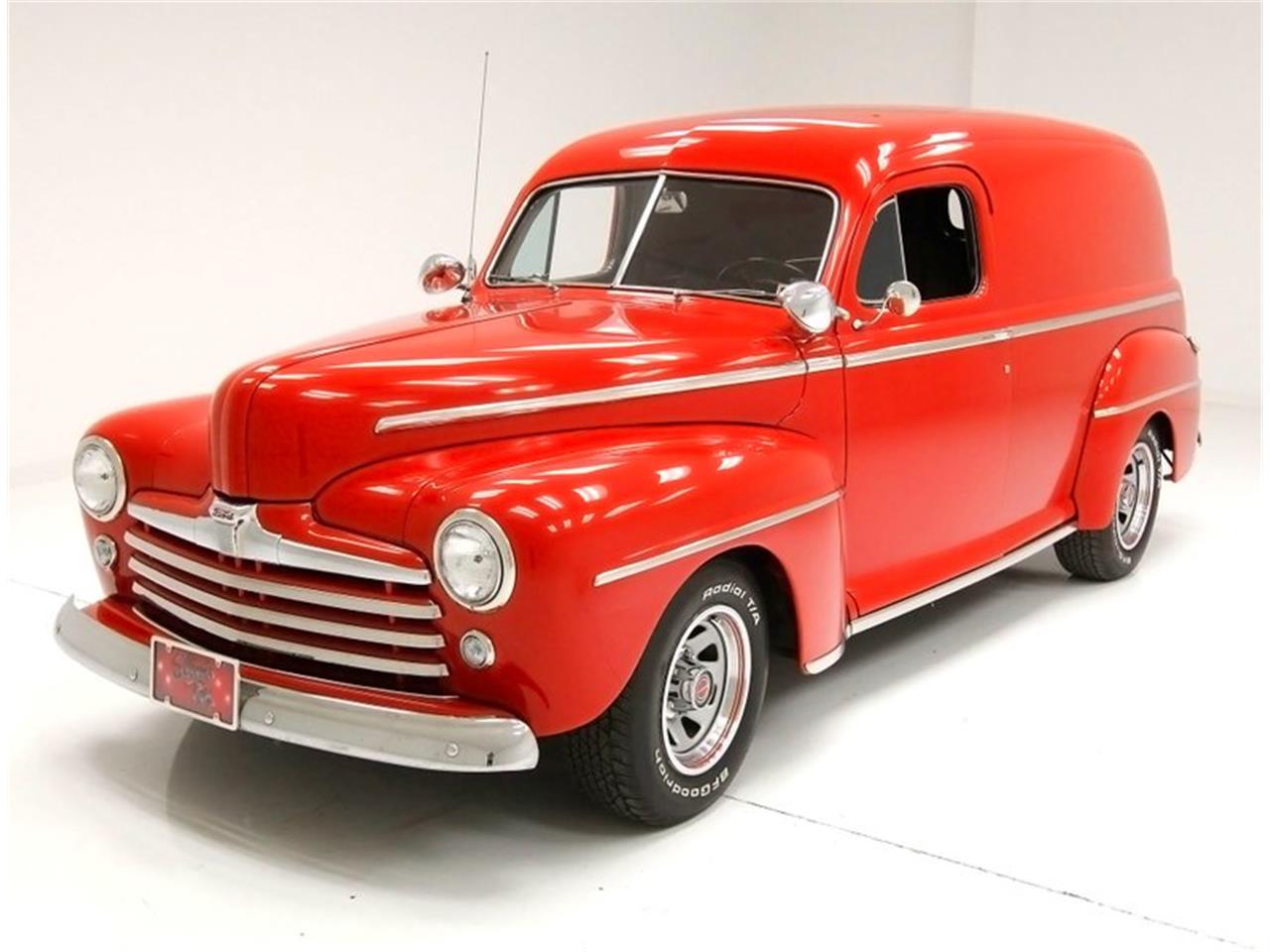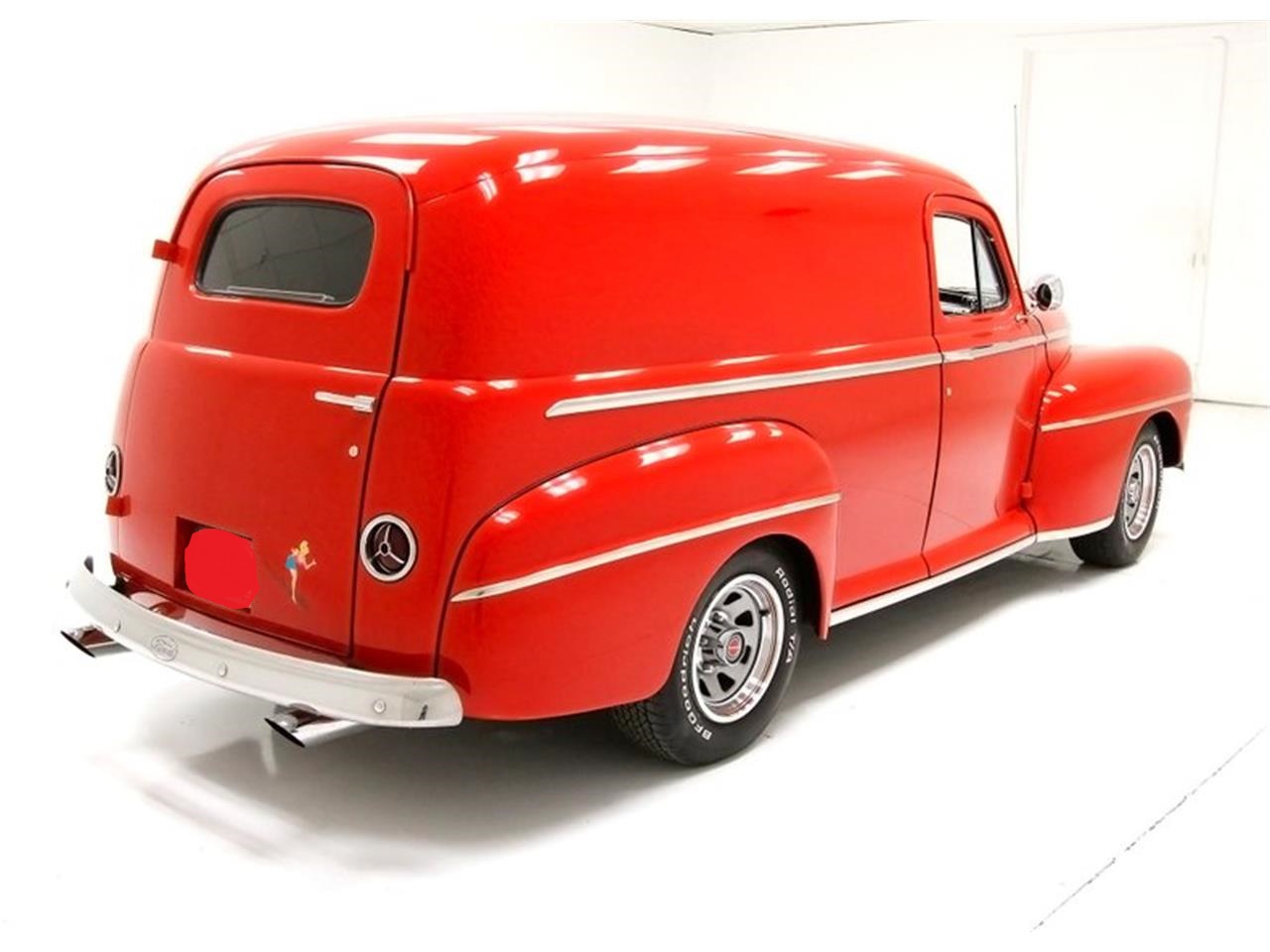 1946 Ford Sedan Delivery.When it comes to old school cool, it doesn't get much better than a tricked Sedan Delivery.A gorgeous wood plank bed, with chrome dividers makes up the very shiny floor.