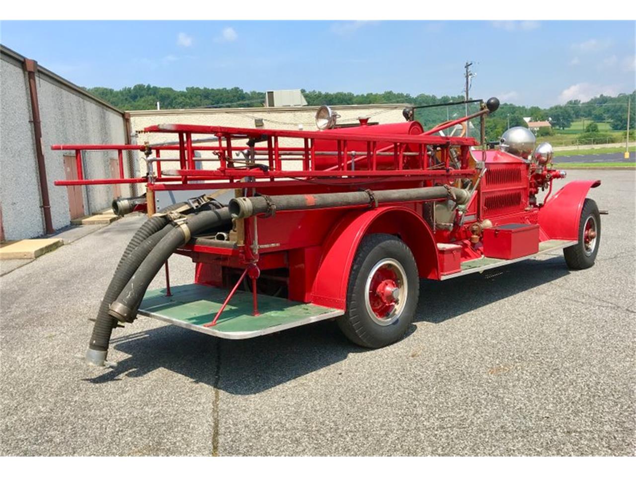 1920 Ahrens Fox Firetruc .This was the best equipment to have for the firehouse and as such, has become the envy of collector s worldwide. A large Chromed Priming ball sits above a 4 pumping engine. This coupled with the invention of a step down nozzle, lower pressure with a larger stream was possible. These two inventions made the fighting with water aspect much safer overall. A 6 cylinder gas powered internal combustion engine was capable of taking the truck up to 50MPH. Due to reliability issues, the Ahrens had built in redundancy.
