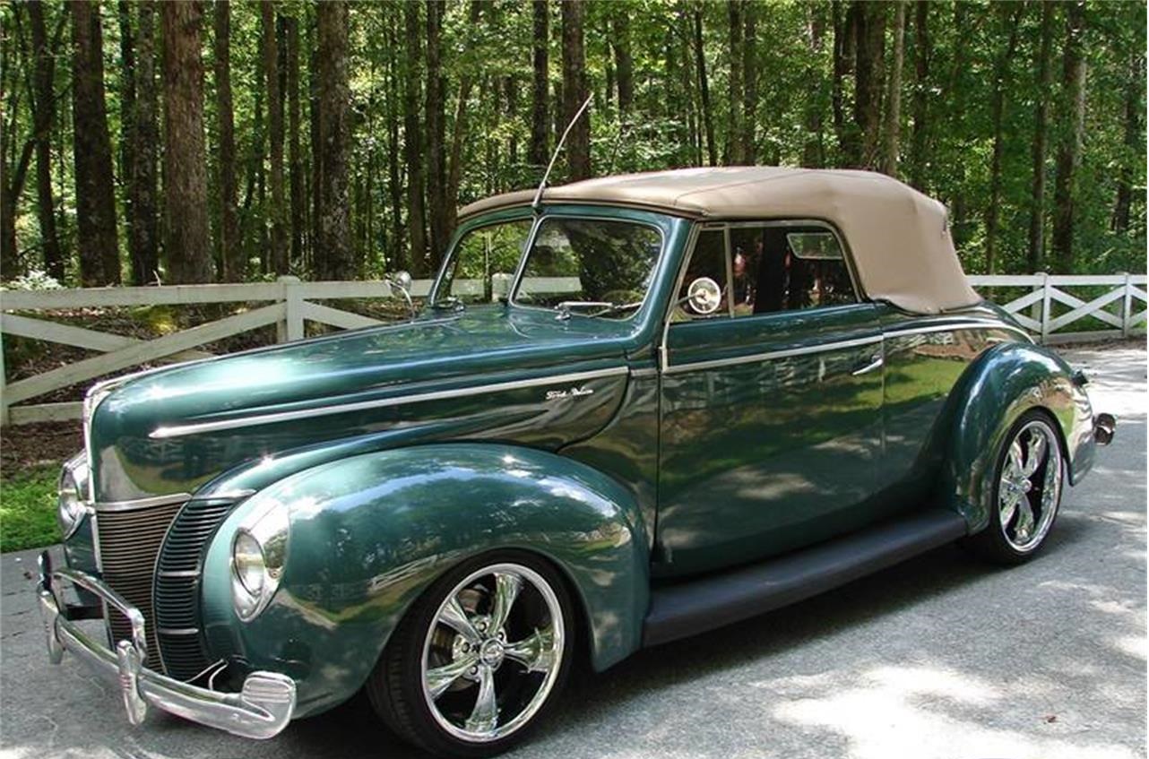 1940 Ford convertible , v8 original flat head, 3 speed on column, drop spindle in front with disc brakes, nova rear end leaf springs(rebuilt), new wheels and tires.
