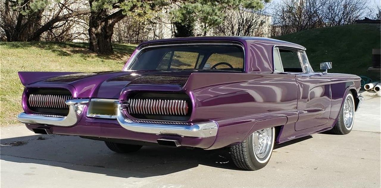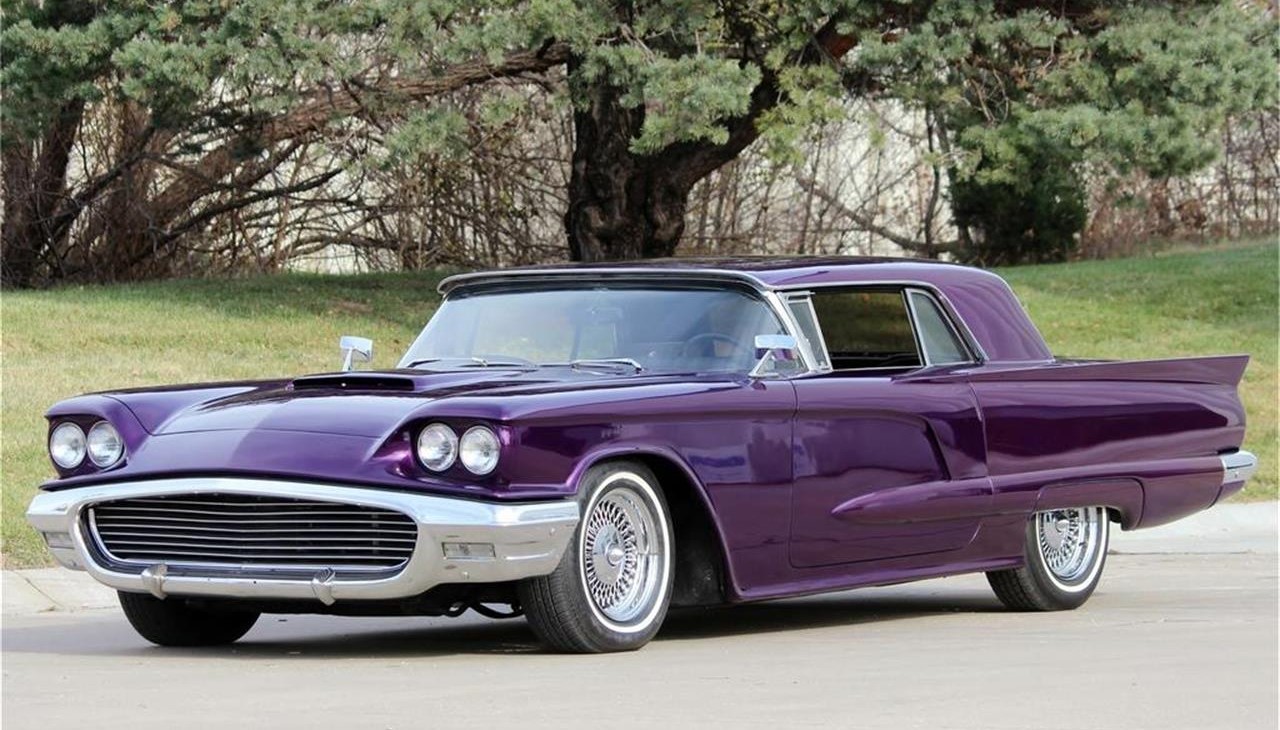 This is an awesome custom 1959 Ford Thunderbird that's had the rood chopped and lowered along with the body smoothed and molded. Under the hood is a powerful 390 High Output V8 mated to C6 automatic transmission. Some features include AC, power steering, power windows, push button door and trunk opener, 7 in touchscreen stereo DVD with bluetooth, 68 Cougar tail lights, and much more. All this is wrapped in a custom purple with pearl paint. This car looks and sounds amazing, and runs like a beast.