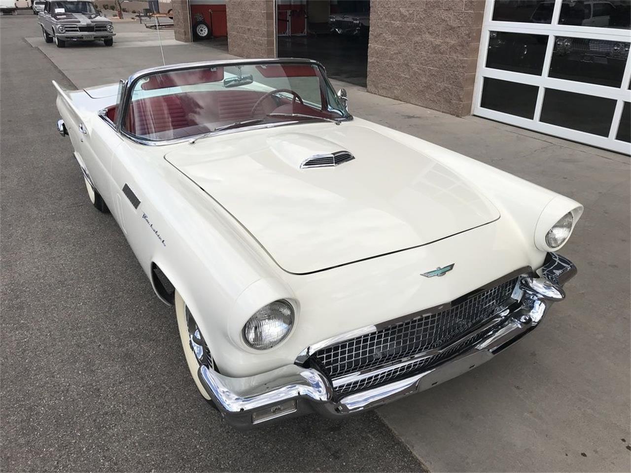 This car has an automatic transmission, power steering and power brakes, Power-Lift windows, Dial-O-Matic 4 way power seat, and soft and hard tops. The evolution of the Thunderbird took a leap forward in 1957 when the Ford designers were tasked with improving this boulevard cruiser sports car. The created a more stable and capable handling Thunderbird, with its spare tire back in the trunk.