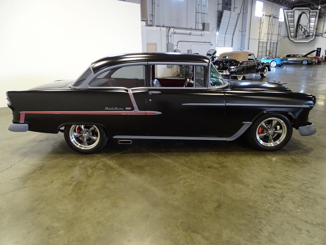 1955 Chevrolet BelAir. Small block Chevy that has been bored and stroked to 383 cubic inches. 4-speed manual transmission. AM/FM CD player, Power steering, Tilt steering wheel, Leather interior, Seat belts, Radial tire wrapped around American Racing(R) 5 spoke rims.