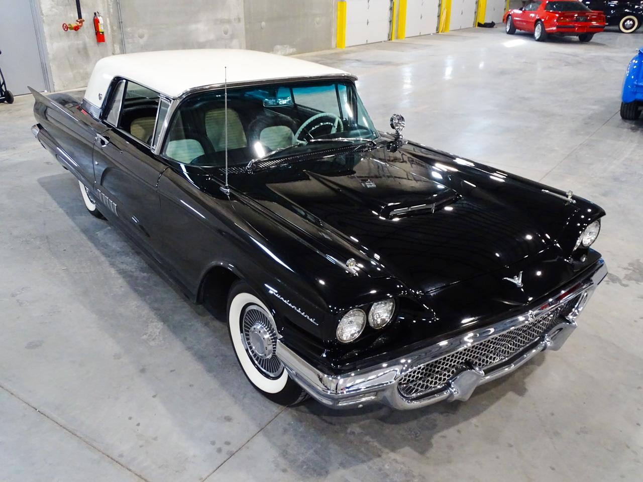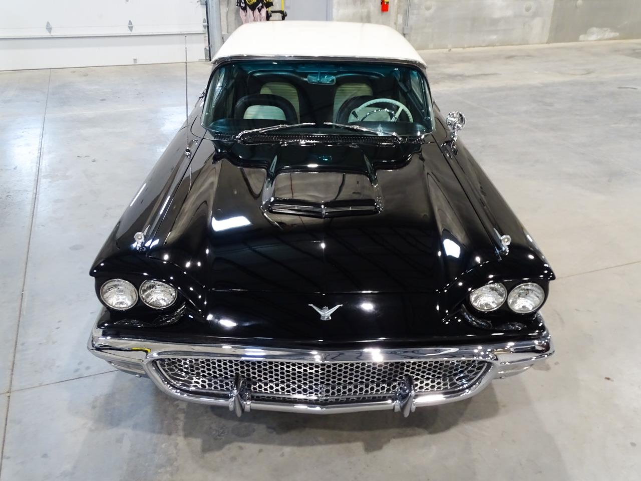 1958 Ford Thunderbird. This 1958 black beauty with white top is wearing its original paint with only 34,700 original miles! With beautiful black and white leather interior, your driving experience will be enhanced by 1958 creature comforts such as tinted windows, power windows, power driver's seat, power steering, power brakes, heater/defroster, working push button AM radio. Plus, propelling this beautiful T-Bird down the interstate is the original 300 horse 352-cu.in V-8!