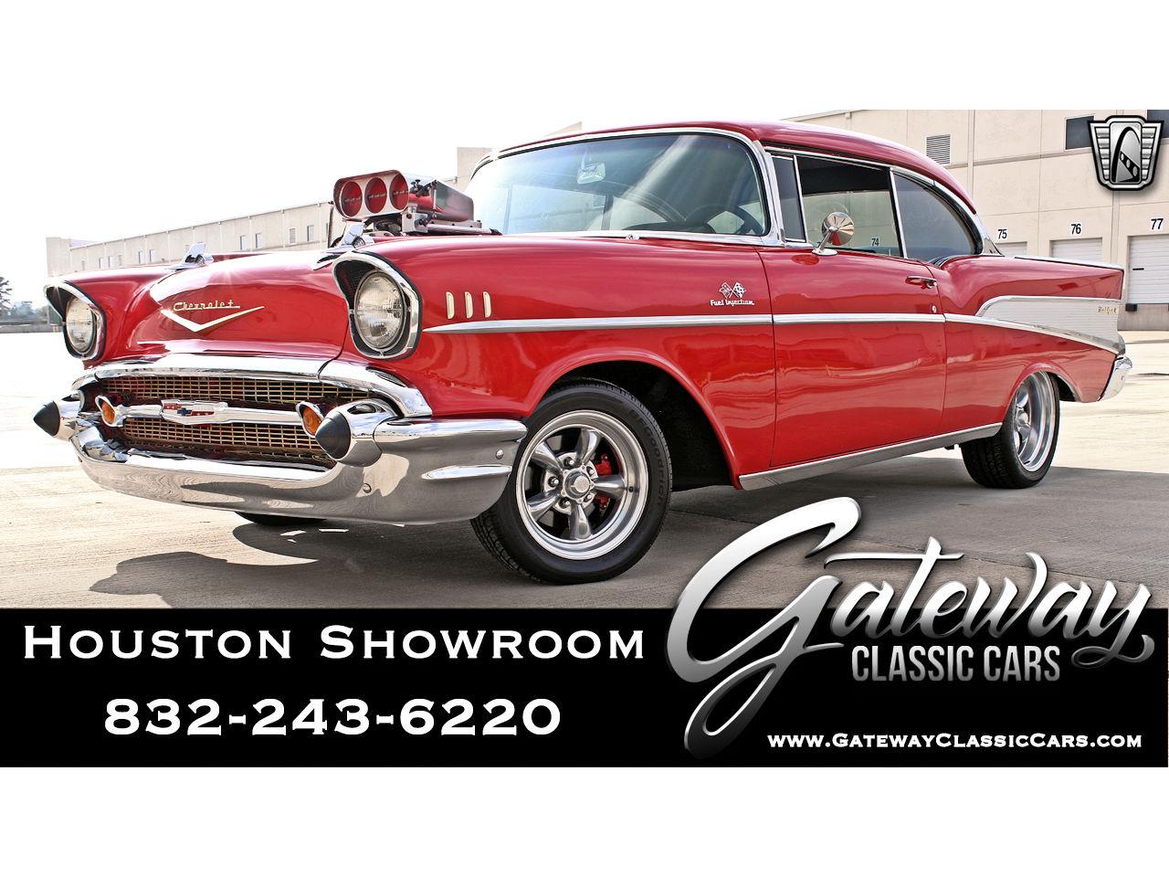 Now for sale in our Houston showroom is this awesome red 1957 Chevrolet Bel Air.