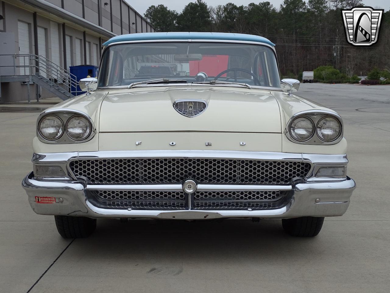 1958 Ford Custom 300 Hot Rod. She is detailed in epoxy red oxide primer, with new fuel tank, and lines, 1955 Chevrolet power steering box, front disc brakes, ladder bar suspension out back w/ 9" Posi-Traction 3:70 rear end, coil over shocks at all 4-corners, and large diameter front/rear sway bars! Painted in a 2-tone 2-stage Blue-White-Blue paint scheme from her vintage. The trim and bumpers all original - and in very good condition with minor patina. Under the hood sits a rebuilt 1966 Mercury 410 Big Block, which is a 390 block that Mercury then implanted a 428 crank into, that has an aluminum intake w/ a Holley tri-power sitting on top! Mated to a rebuilt top-loading wide ratio 4-speed w/ Hurst shifter, to the new Ford 9". The next high-light is the sound - with a set of long tube headers, w/ exhaust extensions for future open-header times, w/ H-tube, 2.5" exhaust pipes and tail pipes - this thing sounds so - strong! Open the hood, and the engine looks as clean as the rest of the vehicle, with an aluminum radiator, and that Tri-Power set up-just makes the statement! Options for this 1958 300 include; vinyl interior, power steering, disc brakes, Pioneer AM/FM/CD, American Racing Torque Flight wheels w/ BF GoodRich P215/70R15, P295/50R60 Radial T/A tires.