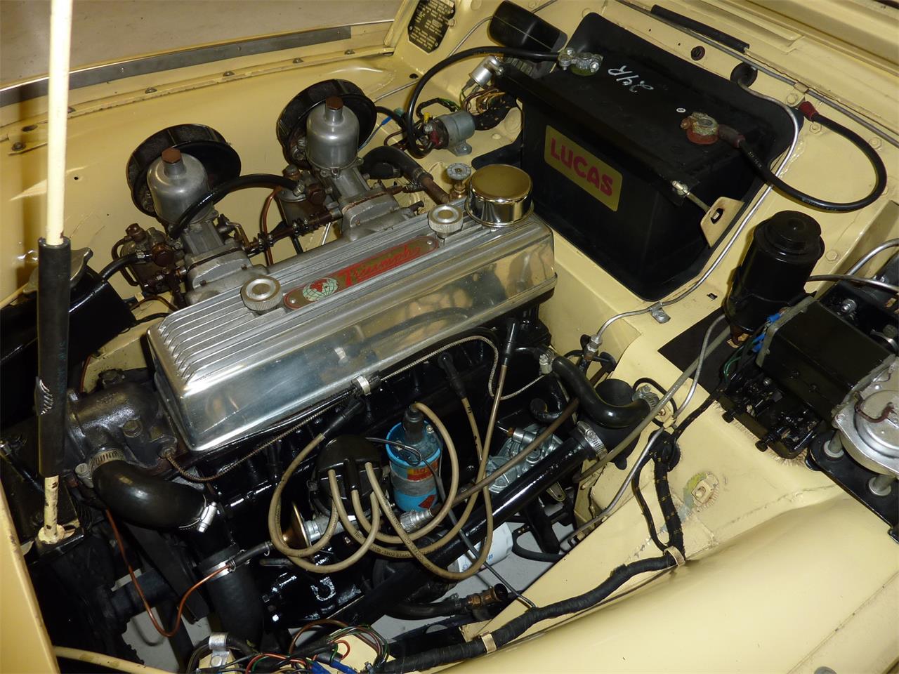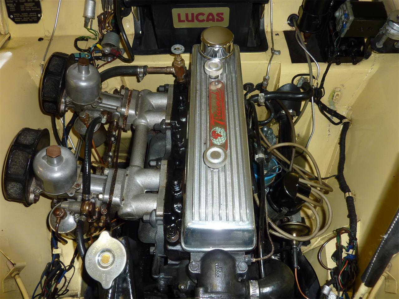 1957 TR3A that is restored to top British Car Day Show condition, finished in pretty period pale Primrose Yellow that is just detailed, nice chrome, side wind wings, fresh strong engine just tuned and detailed, outstanding underchassis and frame that are highly detailed, the mechanicals and cosmetics are fresh.