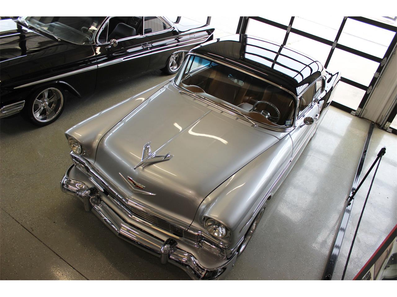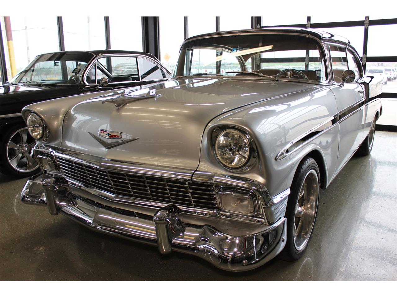 1956 Chevrolet Bel Air.The exterior is finished in Metallic Silver with Black Tu-tone, and is fitted with a beautiful saddle leather interior.