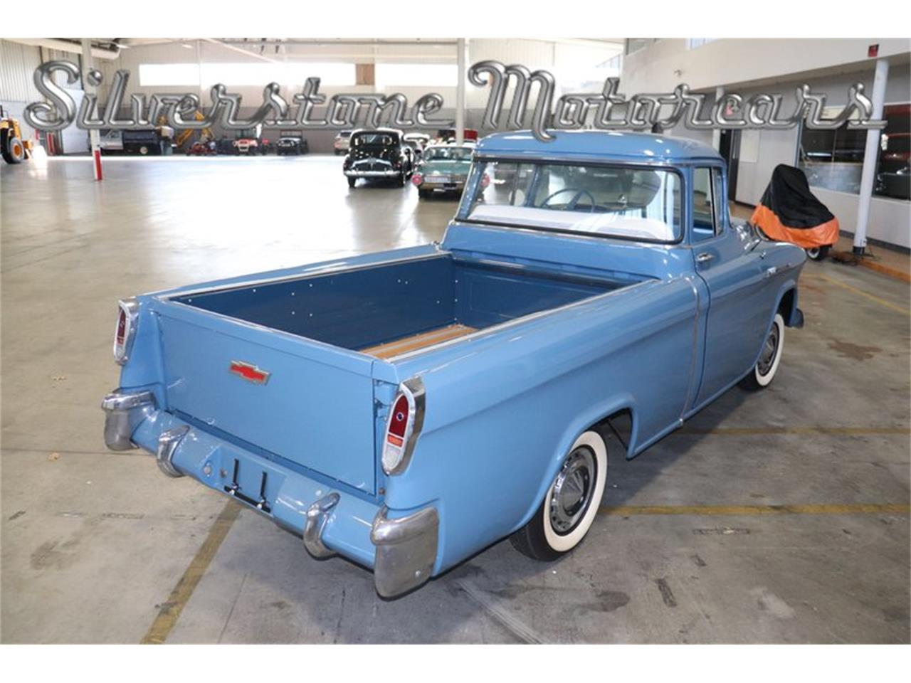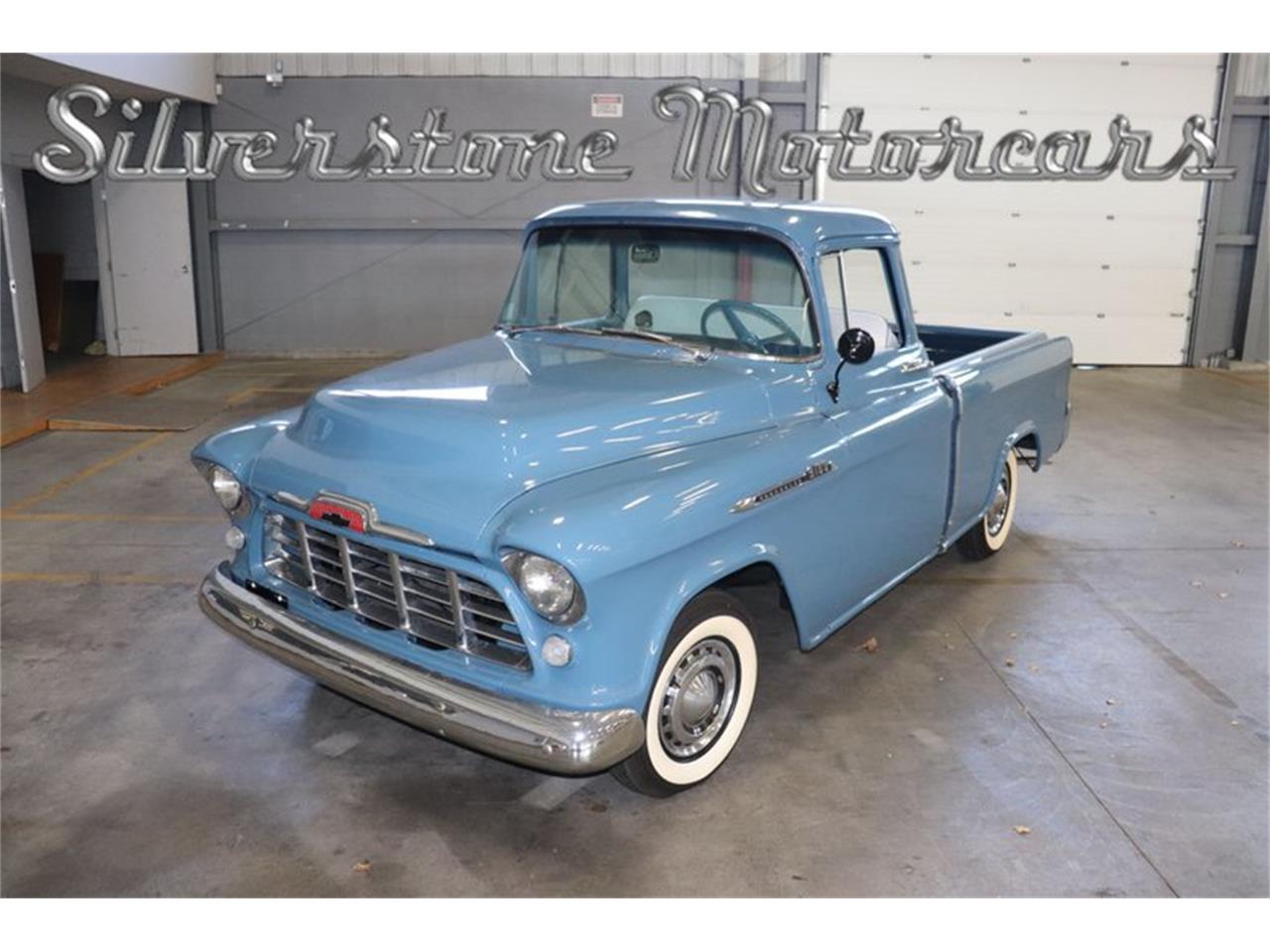 What we have here is a very rare and stunning example of the 1956 Chevrolet Cameo Pickup Truck restored and painted a beautiful Blue Pearl which is complemented by its two tone blue and white Vinyl and Velour Interior; she also has a beautiful wooden bed.