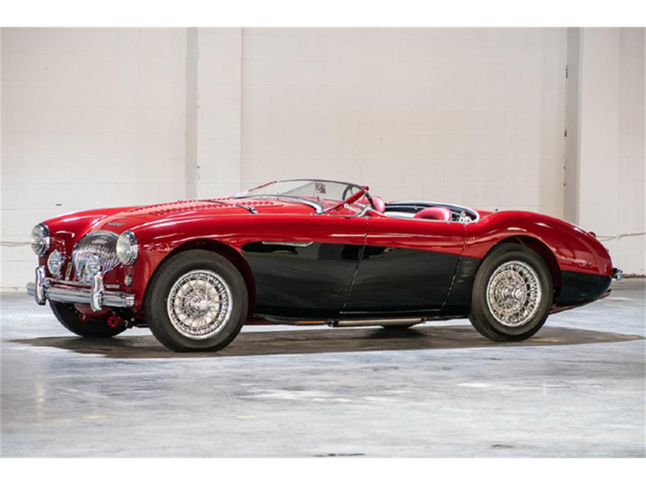 1956 AUSTIN-HEALEY 100 M ''LE MANS'' RENO RED OVER BLACK EXTERIOR PAINT SCHEME WITH RED INTERIOR.