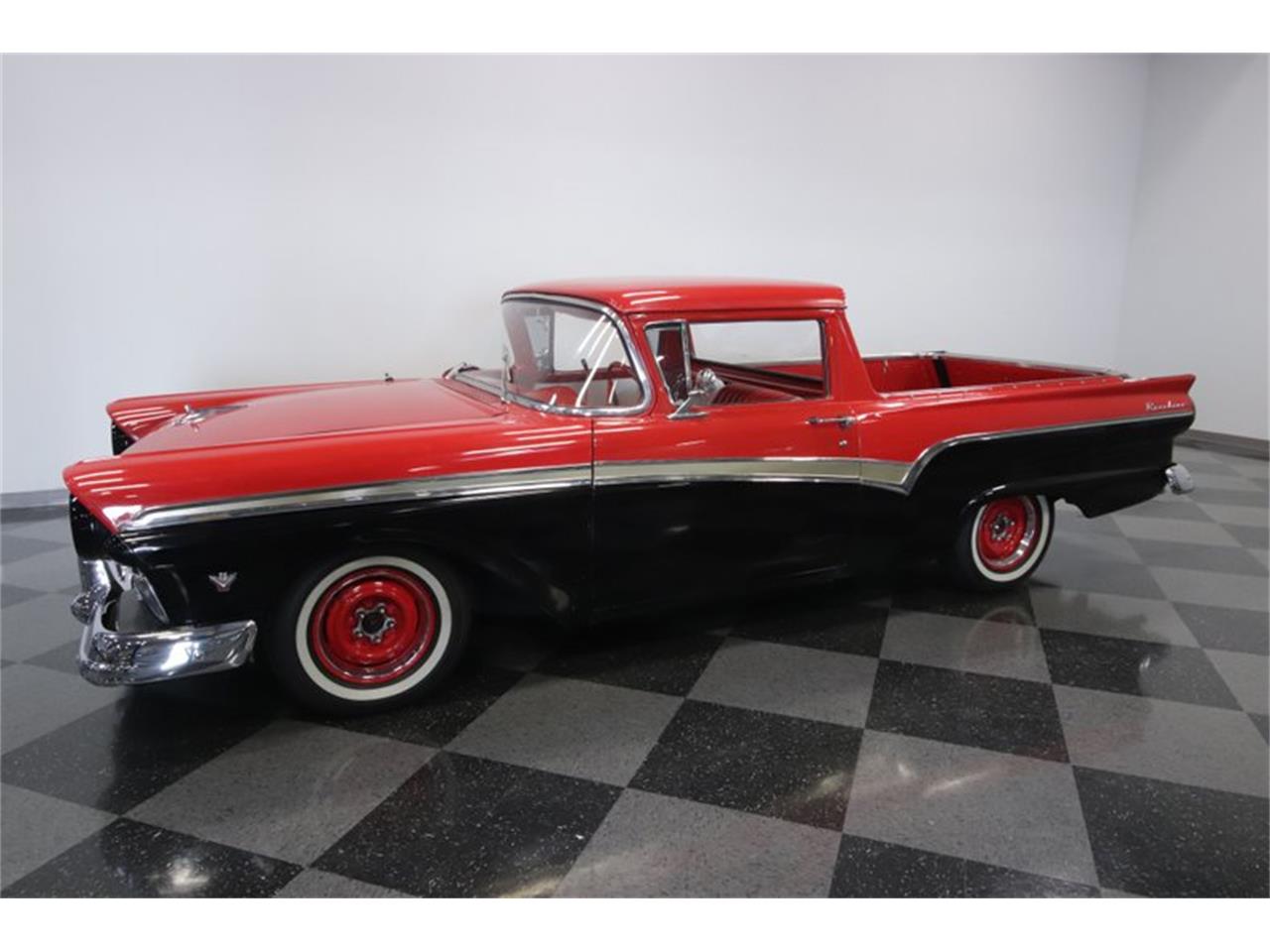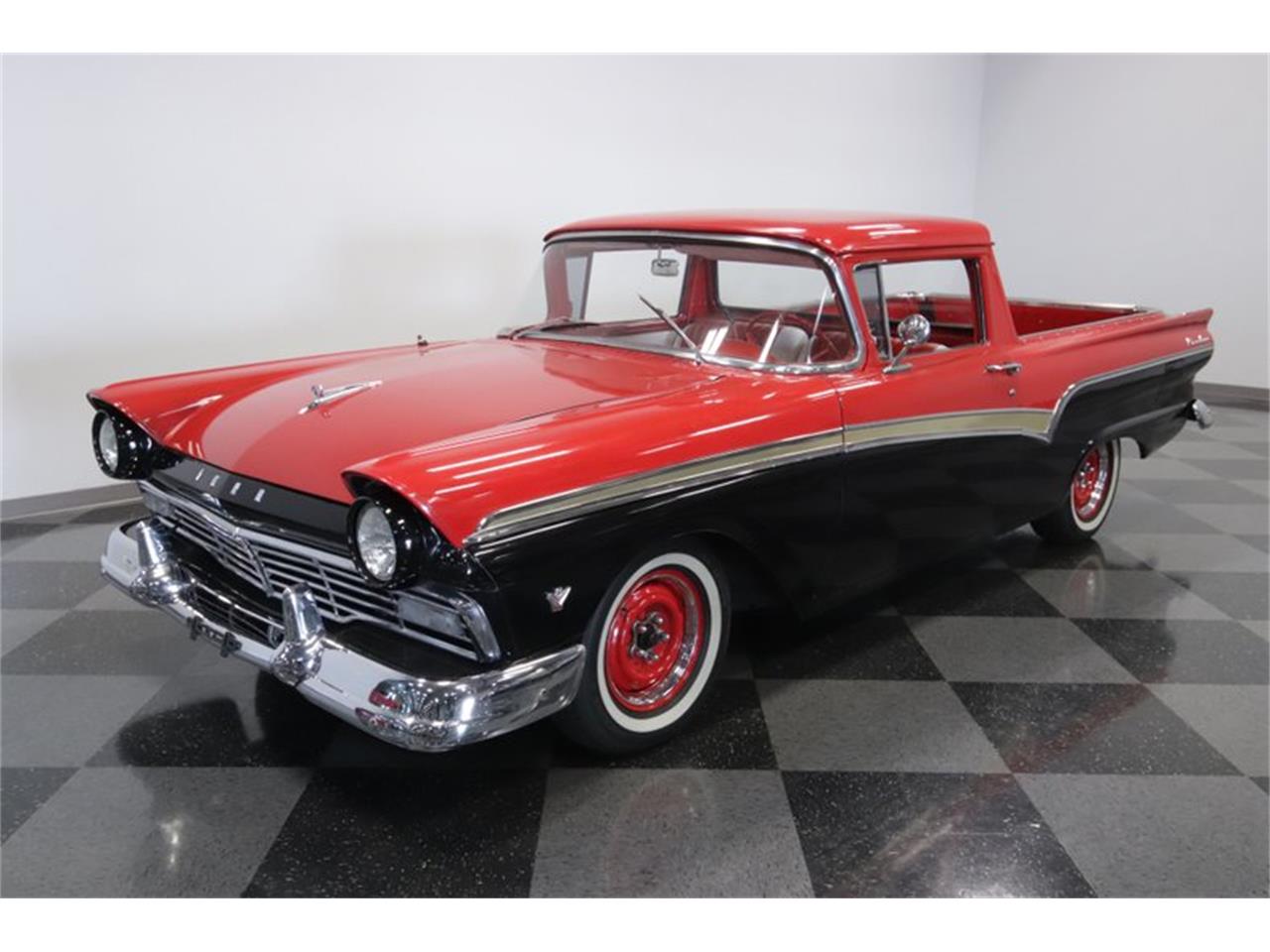 This 1957 Ford Ranchero has small block V8 power, an A/C interior, overdrive transmission, and the distinction of being the first-year Ford introduced this cool car/truck combo.