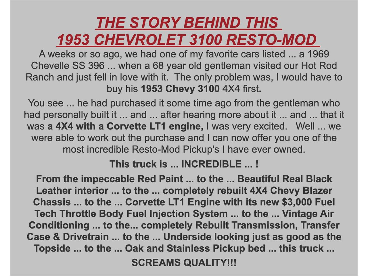 Incredible One-of-a-Kind 1953 Chevrolet 3100 1/2 Ton with 4-wheel Drive built on a chevrolet Blazer frame.