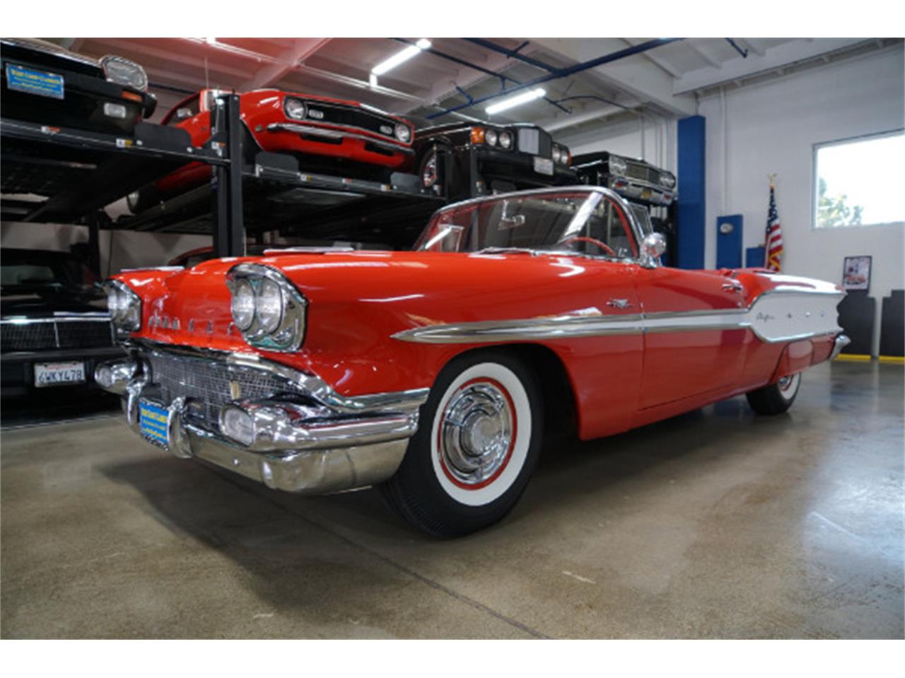West Coast Classics are proud to present an absolutely exceptional and completely rust free example of this recently both mechanically and cosmetically restored, and with only very few miles since being restored, of a mostly all original 1958 Pontiac Chieftan 370/300HP V8 3x2 BBL Tri-Power V8 6 passenger Convertible in a beautiful and extraordinarily striking two-tone 'Rangoon Red amp; Patina Ivory' color and with an absolutely beautiful all new 'Red amp; White' interior and with a new White power soft top! One of only 7,359 built in the very last year of production.