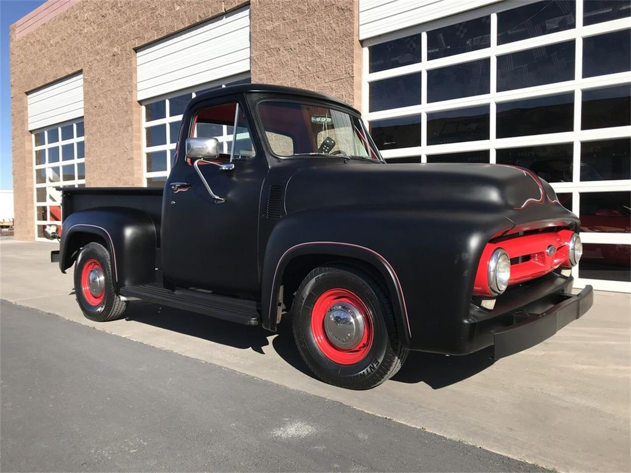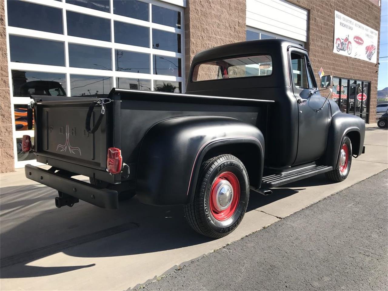 F-100 with an Oldsmobile Rocket 350 4 barrel V8 engine, Turbo 350 Transmission, power steering, tilt wheel, 12 volt conversion, gauges, and dual exhaust mufflers with turn out pipes. The engine only has 3,357 miles. A/C installed. Great condition.