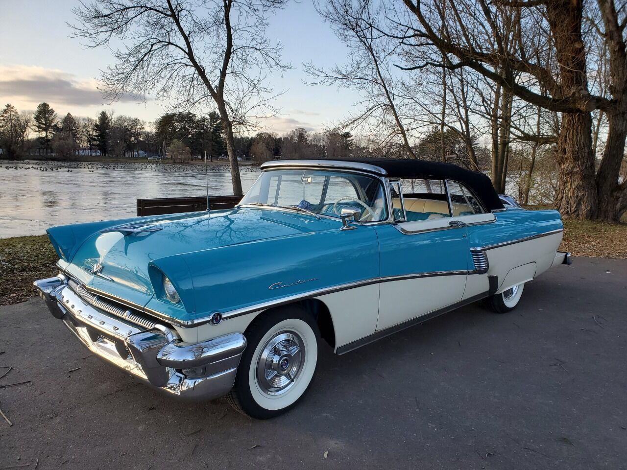 Rare, one of only 2,311 Custom convertibles produced in 1956. Powered by a 312 Y-Block, automatic transmission. Features include dual exhaust, fender skirts, radio, seat belts, power steering and brakes, power windows, and more. The color combo is gorgeous, with matching interior and black cloth top is like new. Runs and drives as good as it looks, and she is ready for a new home and lots of cruising!