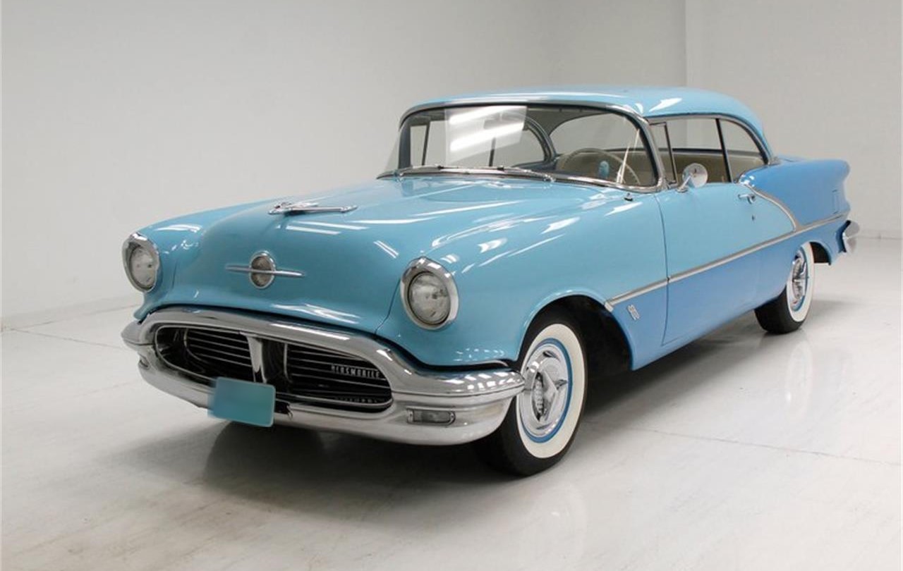 1956 Oldsmobile 88 Holiday Coupe.Oldsmobile entered the 1950s following a divisional image campaign centered on its Rocket engines and its cars appearance followed suit.