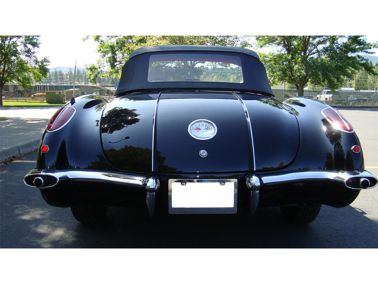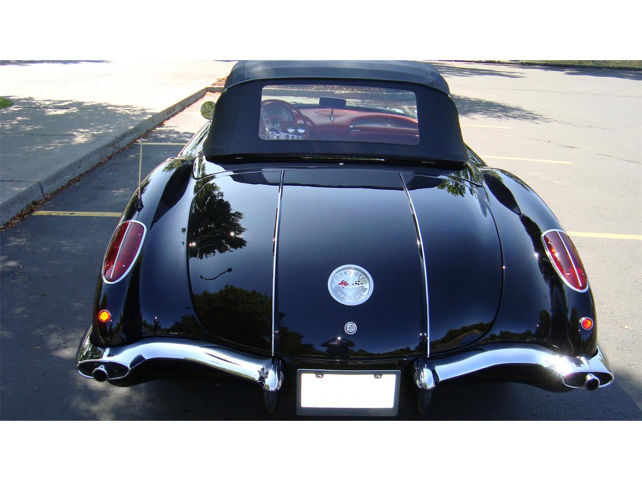 Excellent 1958 Corvette with both hard and soft tops • black with silver coves • red interior with correct pebble grain seats and door panels • Muncie 4-speed • 350 CU balanced engine • Holley 4bbl 600 cfm • Wonder Bar AM/FM/Stereo with hidden speakers • Coker radial tires • KYB gas shocks • Mallory electronic ignition • professionally maintained • resides in heated garage.