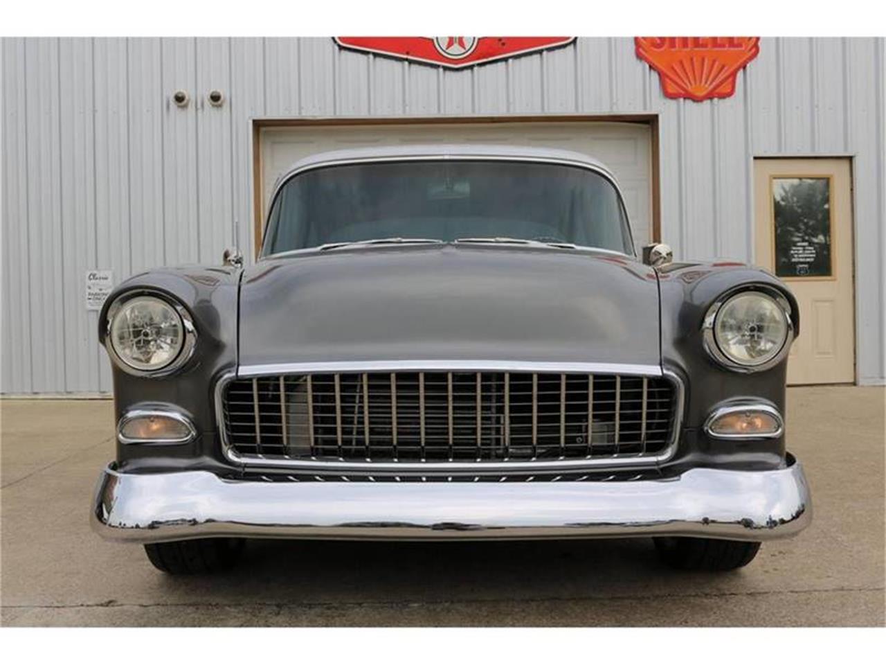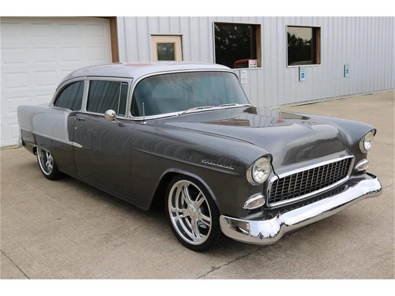 The striking two-tone silver and gray paint paired with the lowered stance truly set this classic Chevy 210 apart from all others. The stroker motor backed by the 700R4 transmission. 383 Stroker (425ci), Auto (w/pistol grip shifter), RideTech Air Ride w/4 link rear end, Shaved Firewall, Programmable MSD Ignition, Serpentine Front Runner Kit, Edelbrock Intake, Moser Axles and Internals, Power Steering, Slotted/Cross-drilled 4-wheel Disc Brakes, 26 Gallon Stainless Tank, Custom Interior, Gray Leather Bucket Seats, Tilt Steering, Tinted Glass, Sony AM/FM/USB/Satellite Stereo, Diamond Audio Amps, Custom LED Lighting, Custom Interior w/ Upgraded Gauges, A/C, Center Console Storage, Chrome Grill, Chrome Bumpers & Mirrors, Cloth Floormats, Schott Mod5 Alloy Wheels, and New Nitto NT Extreme ZR-rated Tires.