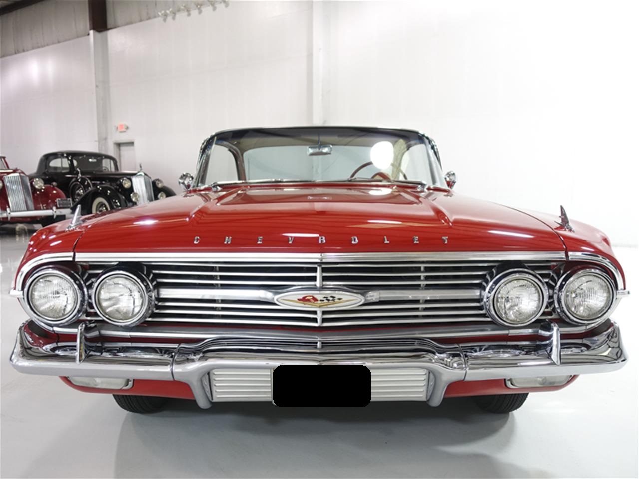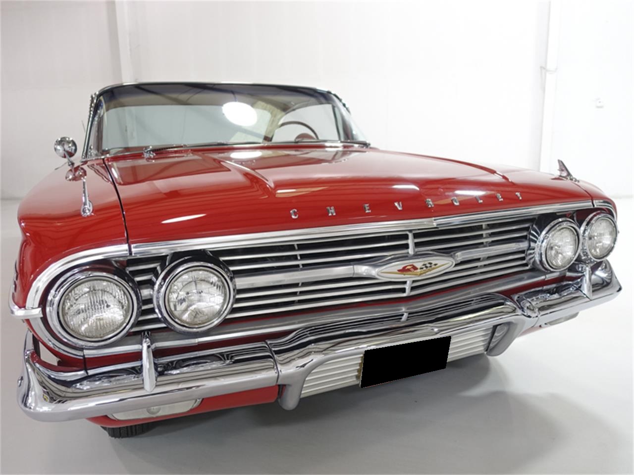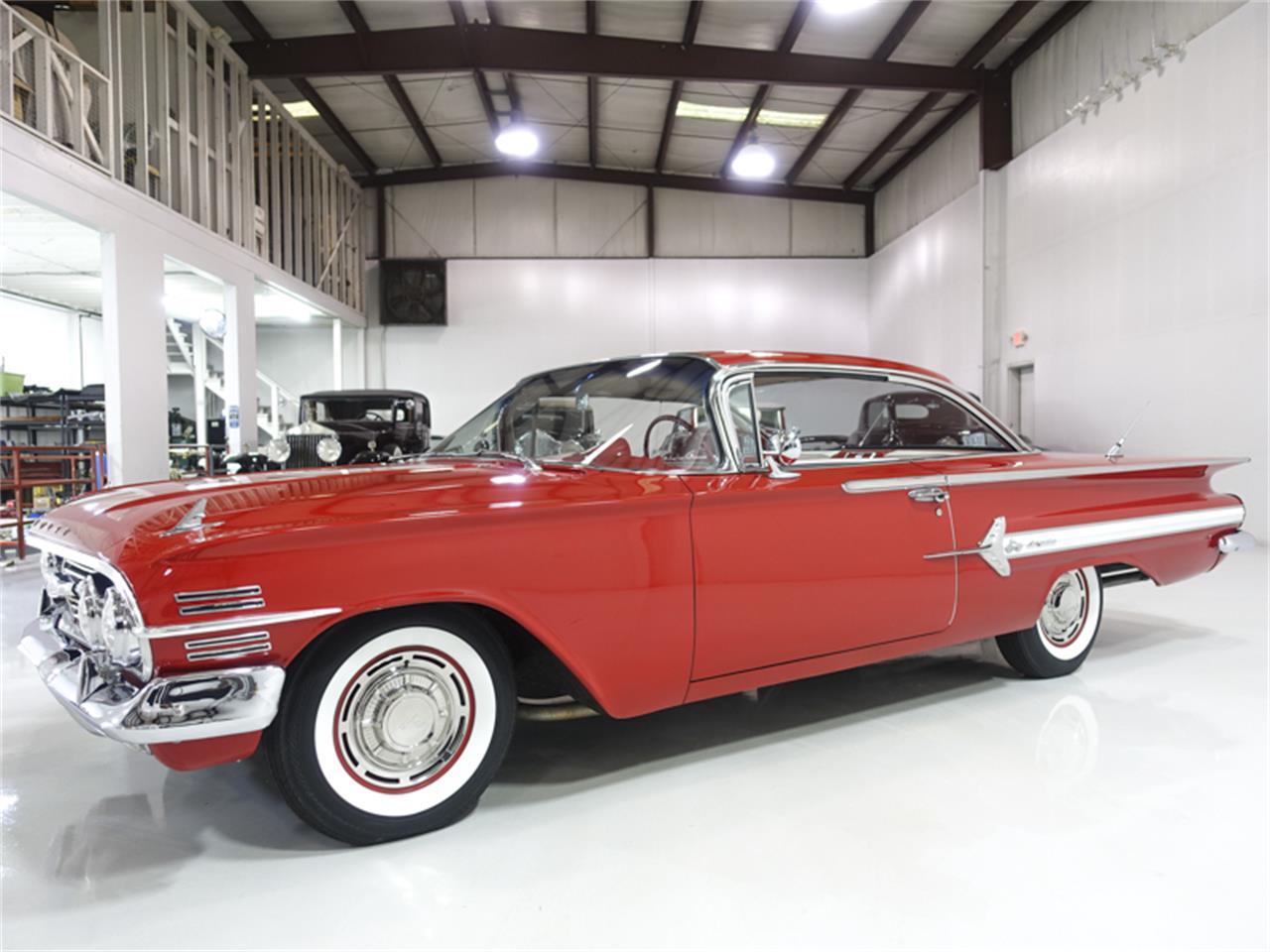 The 1960 Chevrolet Impala Sport Coupe featured here is finished in the stunning factory correct color combination of Roman Red over a matching red interior.