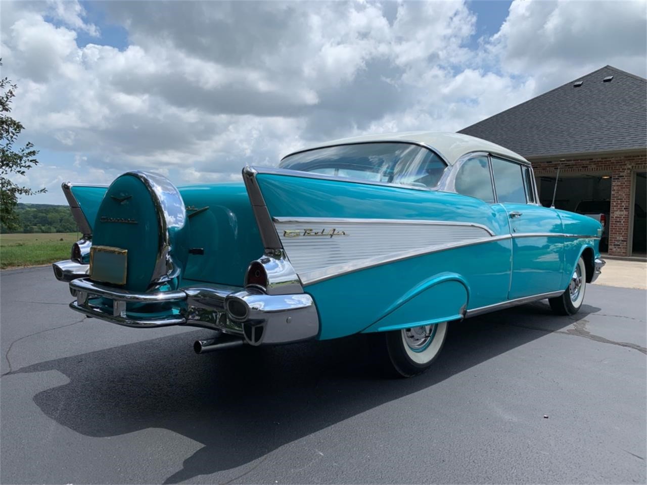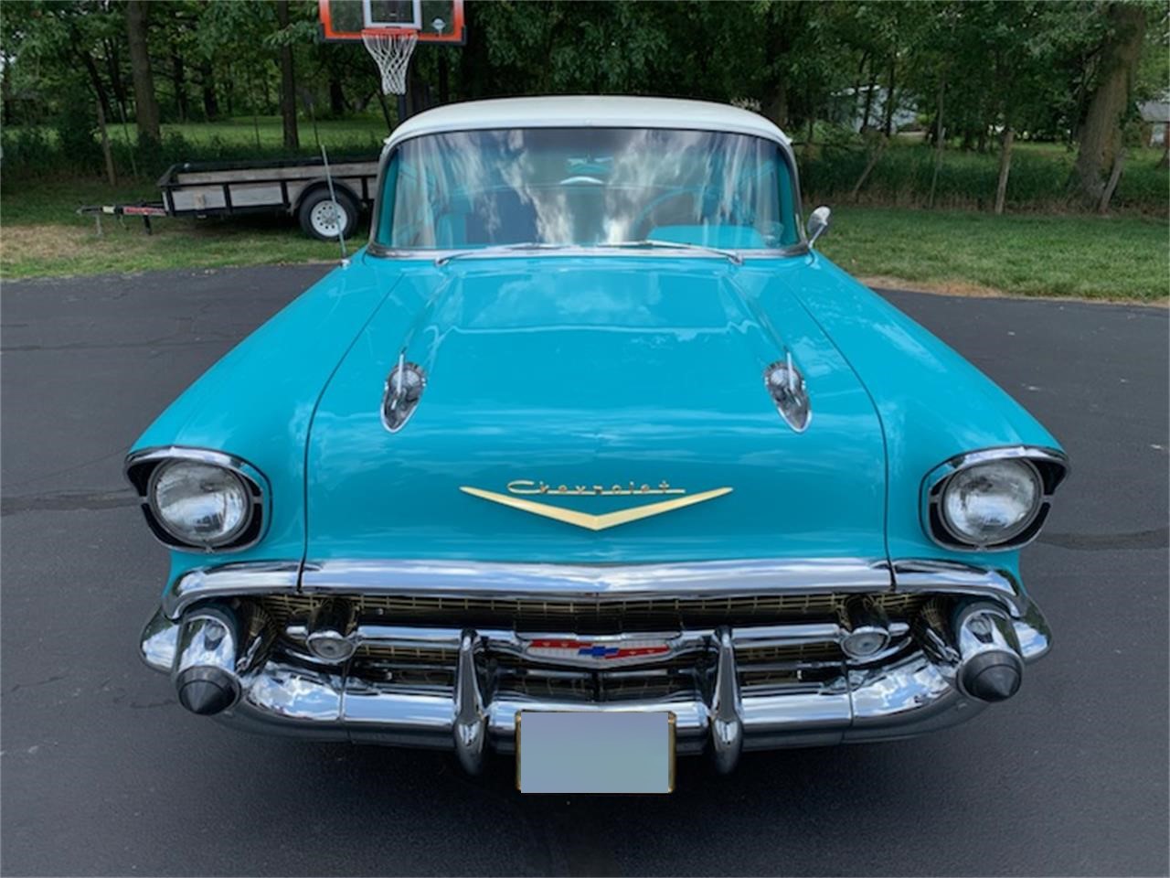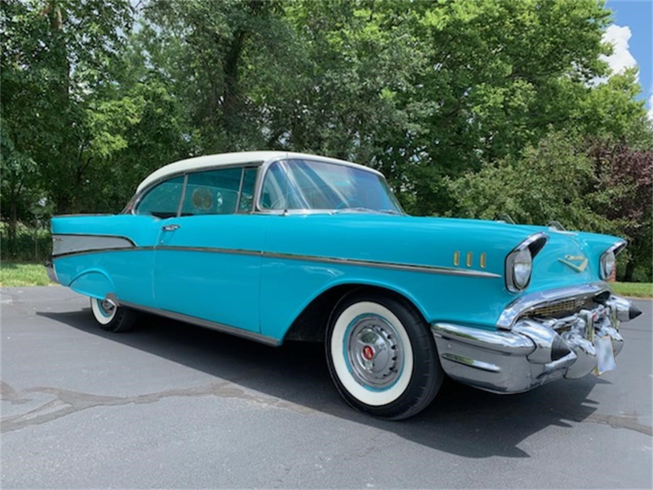 1957 Chevy Bel Air 2 door hard top. This car has always been garaged and well taken care of. It has a 283 V8 engine, power glide automatic transmission, power steering, continental package, fender skirts, white wall tires and dual exhaust.