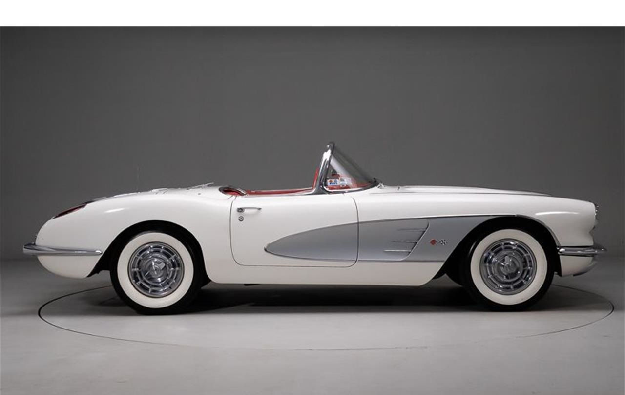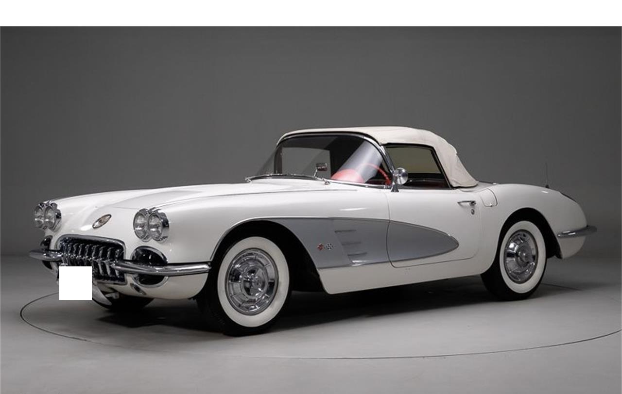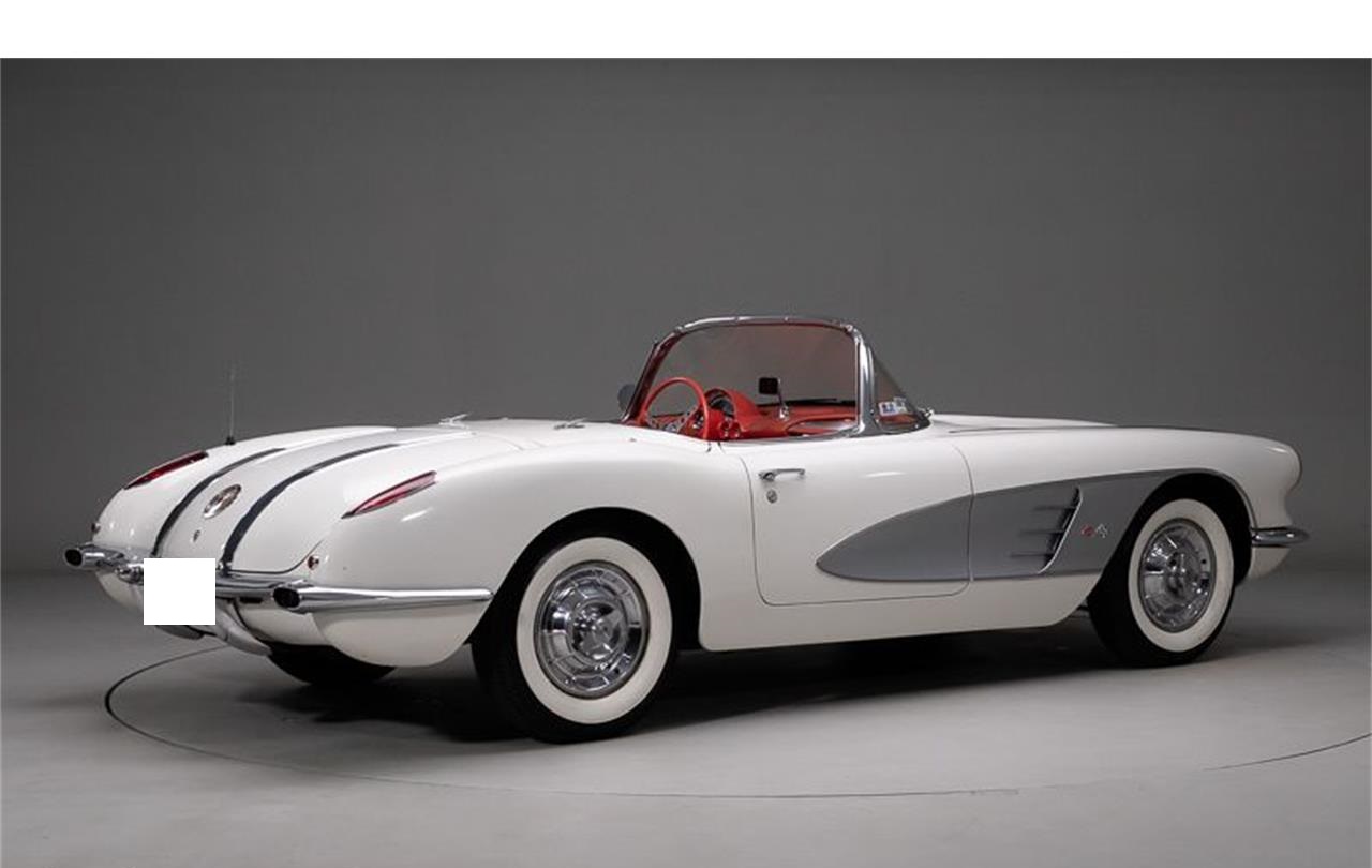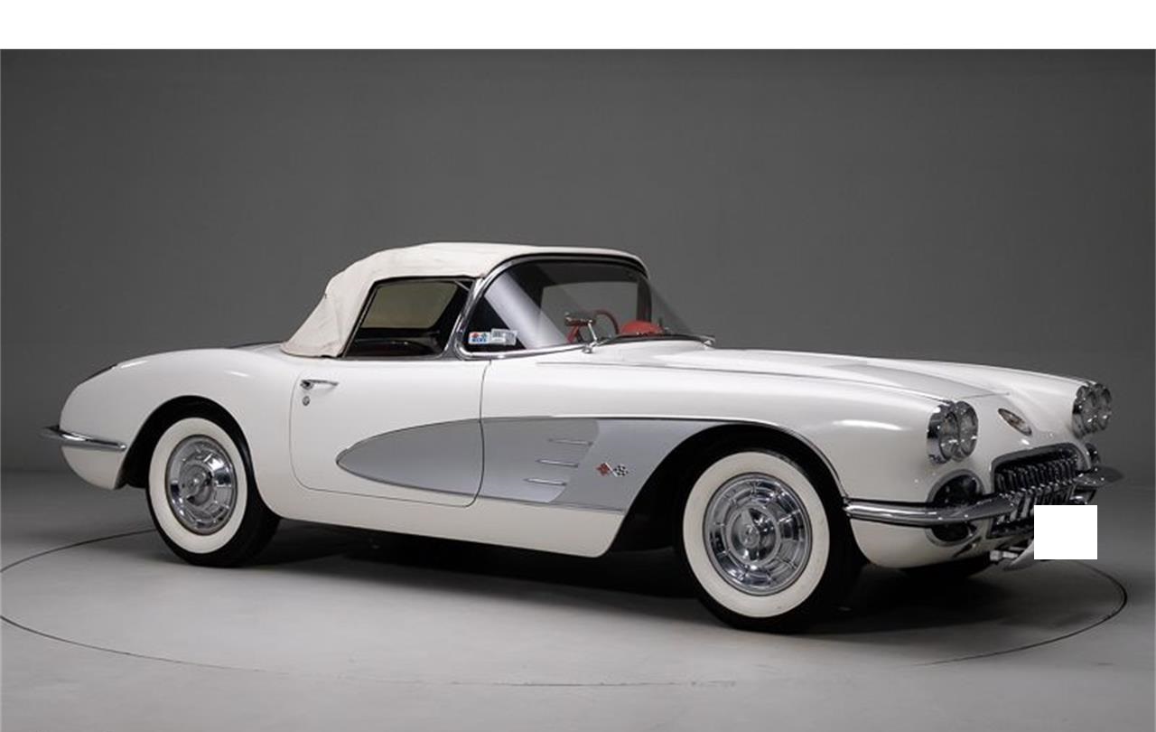 This Corvette is equipped with the rare 283ci/245hp Dual Quad engine backed by a Powerglide automatic transmission. It is finished in the attractive Snowcrest White paint with Silver coves complemented by a gorgeous Red Interior.