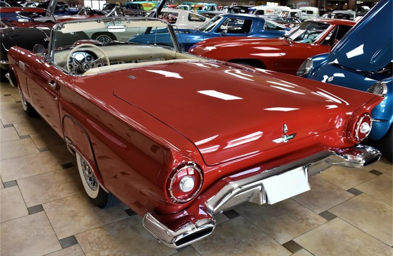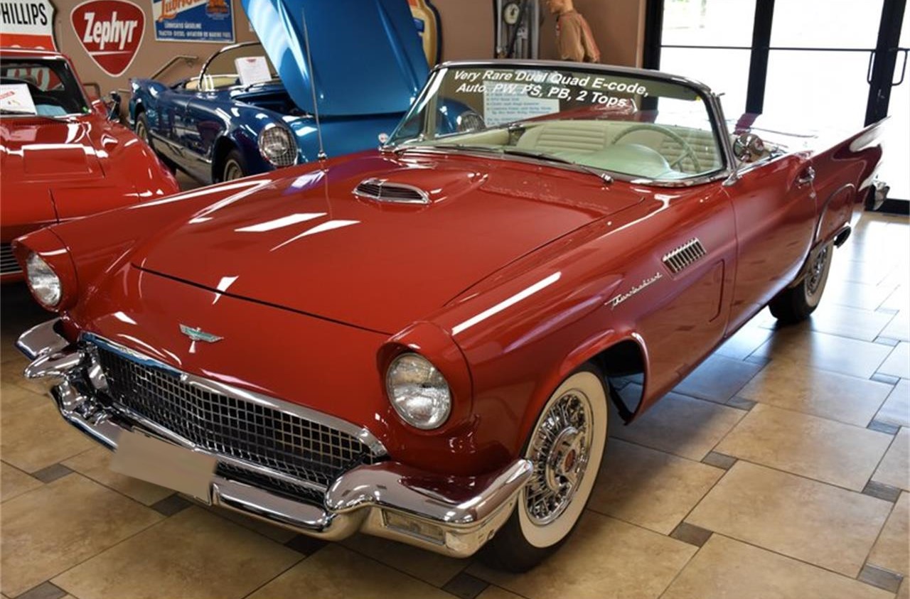 Rare 2x4bbl E Code 1 of 1,363 - Both Tops - Telescopic Steering Column,Flame Red , Kelsey Hayes Wire Wheels, Power Steering , Power Brakes , Rear Skirts. Powered, of course, by the potent 270hp 312C.I. V8 engine fitted with two 4 barrel carburetors connected to the rear wheels via a smooth 3 speed automatic transmission, making it one of 1,363 ever built