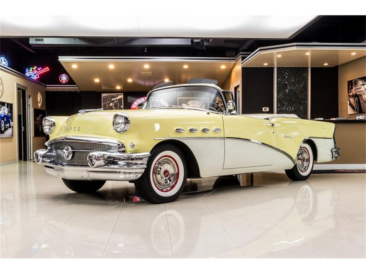 This Buick is sporting a glossy Yellow and White Paint finish, a beautiful Black and White Interior, and gorgeous Chrome all over that is sure to turn heads wherever you go. It has been completely restored, and upgraded with its higher model Buick Century looks. A White Power Convertible Top, Red Wheels with Chrome Caps, and Whitewall Tires set this 56 apart from the rest.
