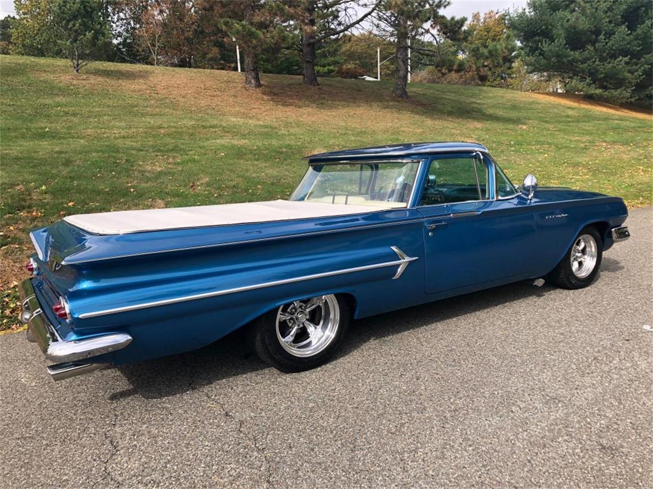 1960 CHEVROLET EL CAMINO CUSTOM; LEMANS BLUE TRIM; WHITE ENGINE; 396CID V8 4/SPEED 4W DISC BRAKES; *POWER RACK AND STEERING *AMERICAN RACING WHEELS *TONNEAU COVER *SPRAYED IN BED LINER *AM-FM RADIO. MILES 20,466. THE UNDERBODY IS AMAZING SOLID EVERYWHERE, ENGINE ,TRANS REAR ALLPERFORM THE WAY THEY SHOULD WITH GREAT SOUND FROM HEADERS AND FLOW MASTER EXHAUST.