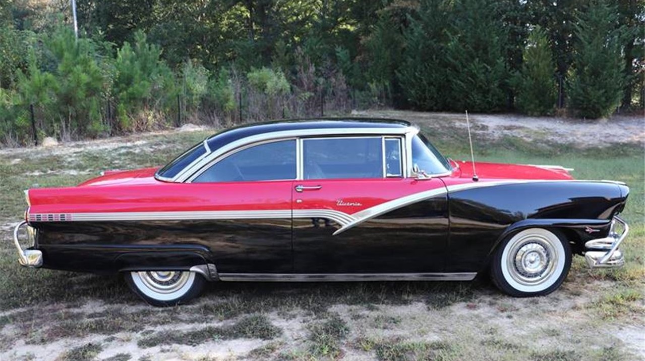 1956 Ford Hardtop Victoria Mechanical. Power by massive 390 Big block. 3 speed manual Exterior. Raven black paint. Super Straight down each side. All chrome and stainless in good condition Interior. Black and white interior. All interior in decent shape no tear. Steering wheel and dash in good condition. Trunk has mat and spare tire.