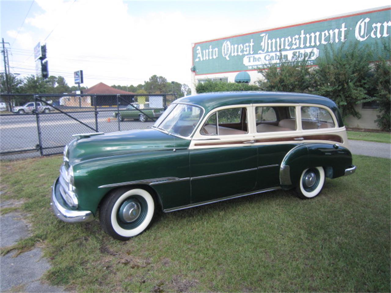 1951 Chevrolet Woody DeLuxe Station Wagon, 216 CID 6 Cylinder engine, Green with Cream & Woodgrain Trim, Tan interior, 3 spd manual transmission.