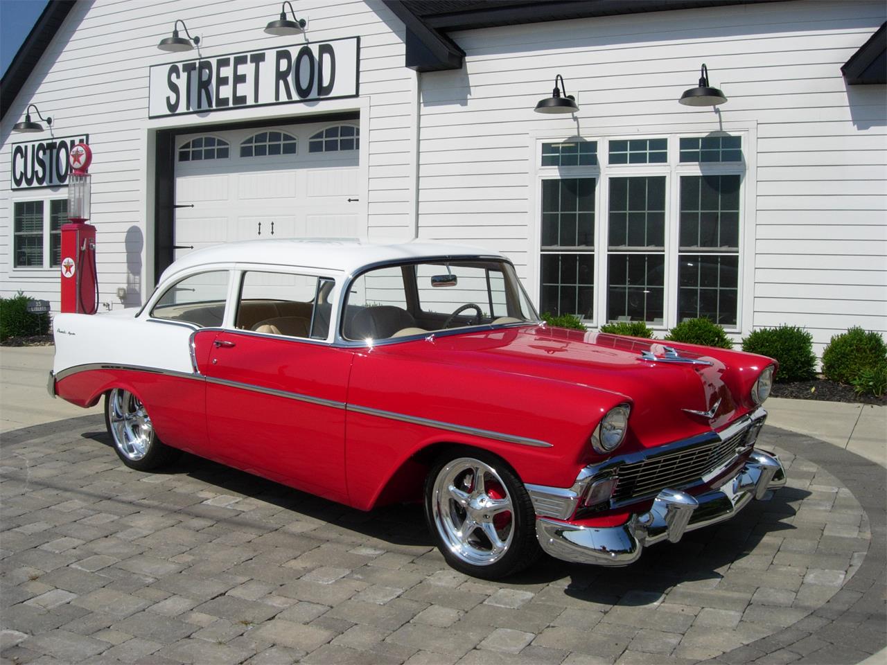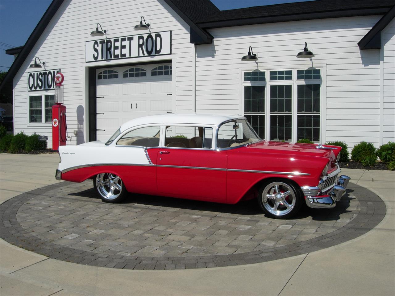 Painted custom Red White PPG two tone.Driveline consists of show engine bay with custom firewall, inner fender panels and radiator cover. Small block built 383 c.i. engine by Chevrolet Performance 500 h.p., topped with Trick Flow heads and full comp cam valve train, Edelbrock intake and Demon 750 carb. MSD ignition.