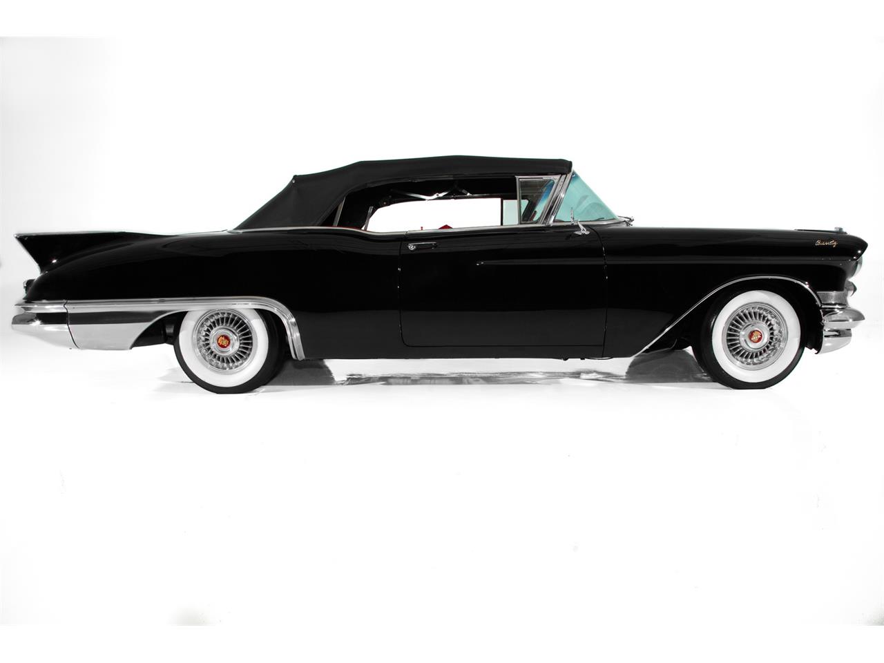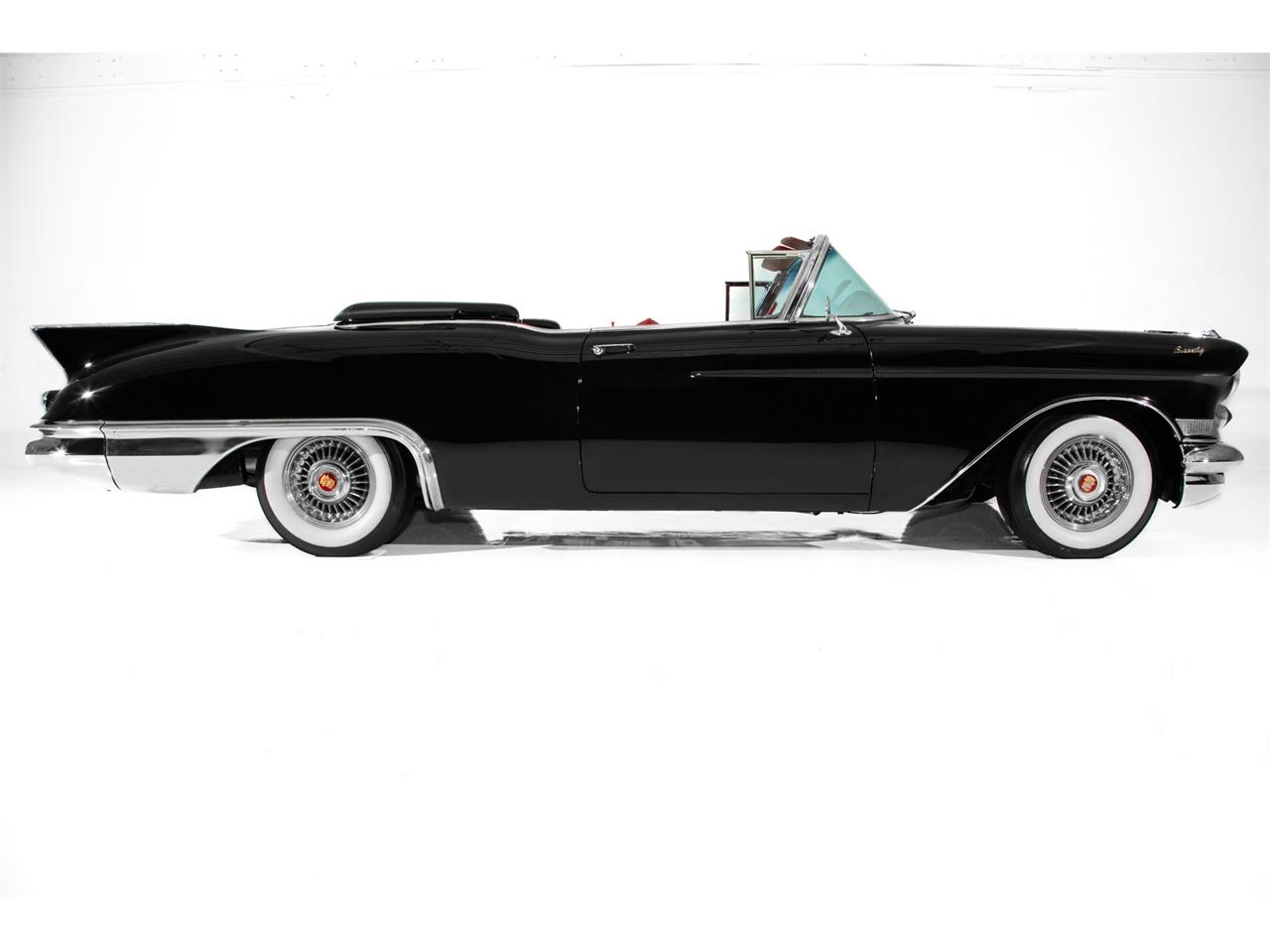 This highly optioned classic cruiser has the Biarritz 365/325hp engine, loaded with power options including, Batwing air cleaner with dual quad carburetors, rare factory air-conditioning, power steering, power brakes, power windows, power locks, 6 way power seats, autronic eye power dimmer, power trunk release and pull down lock. This black automotive masterpiece was originally white and was upgraded with a mirror finish jet black paint job to show case the incredible body lines on this exquisite car. New expensive parade boot that has been painted to match and the latches have been rechromed.