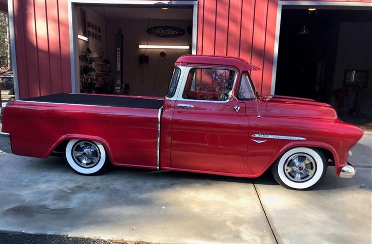 1955 Chevrolet Cameo pickup truck. 327 motor on a turbo 350 transmission. Camaro sub frame. Drives amazing. One piece tinted door glass. PS, front Disk brakes,Cold AC.