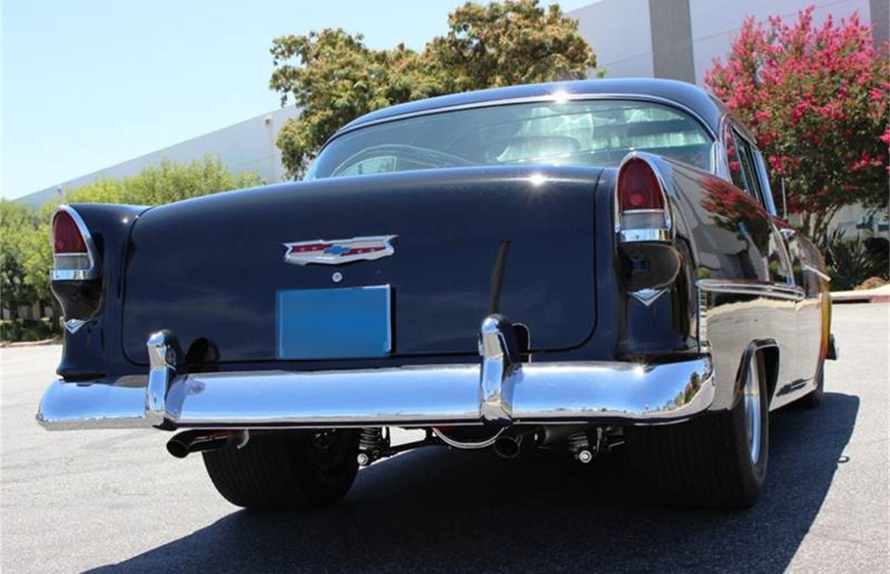 1955 chevrolet bel air professionally built 383ci stroker small block chevy by racing head service. make sure you look at the undercarriage photos.less than 11,000 miles on engine ,stunning black exterior with custom flames, immaculate matching black vinyl interior with red piping front bucket seats for a more sporty feel .