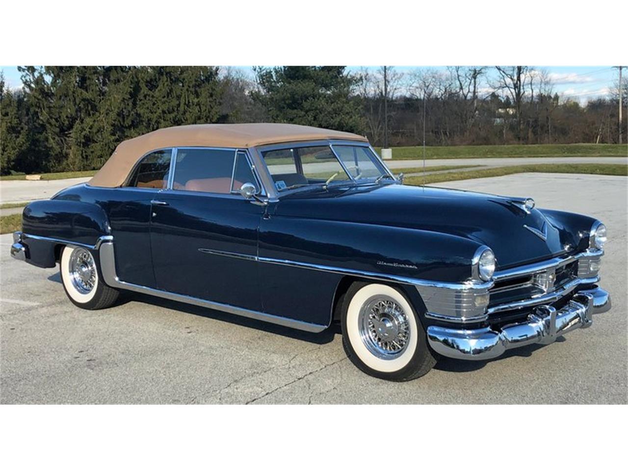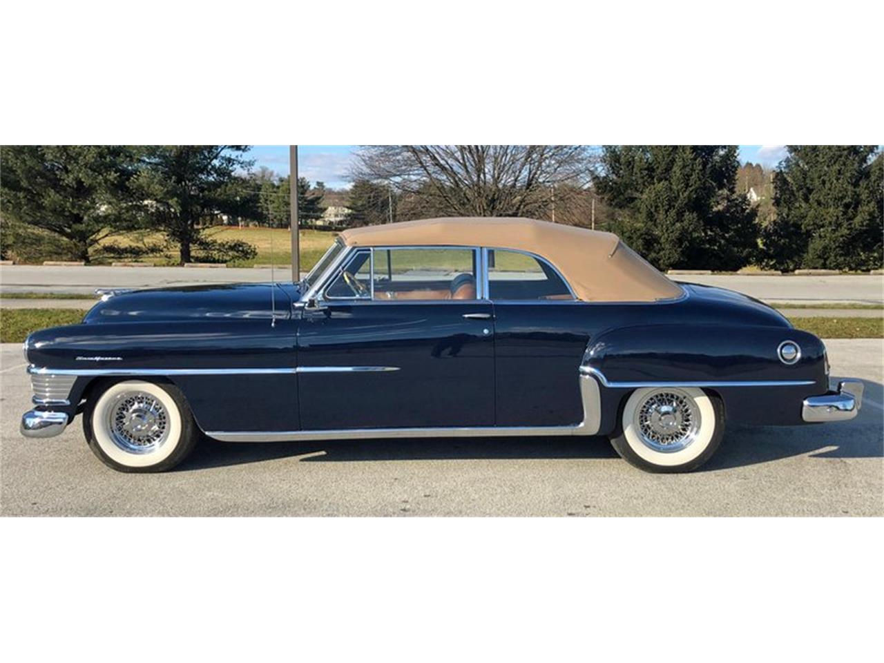1951 Chrysler New Yorker Convertible beautiful car, rust free, stunning Equator Blue paint, excellent Tan leather interior, perfect Tan Hartz cloth top, powerful 331 cu in 180 HP Hemi V8, automatic transmission, wire wheels, wide white wall radial tires, fully serviced and ready to go, first year for the Hemi, last year for the long 131.5 inch wheel base, rare only 660 produced, must see this impressive car.