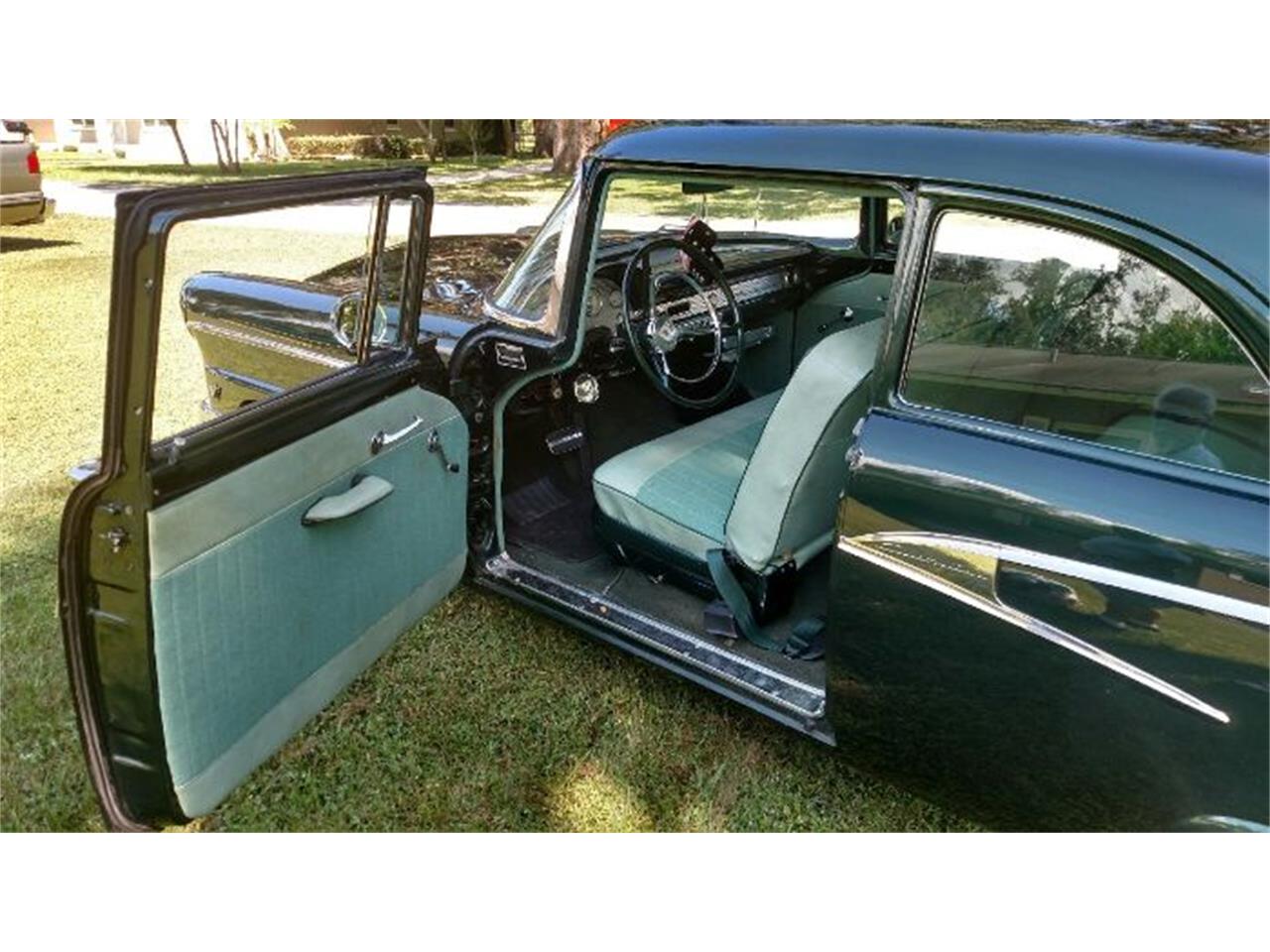 1956 ford customline 302 rebuilt engine aod automatic transmission power steering power brakes disc frt drum rear air conditioning heat classic in dash vents custom gauges cruise control everything works properly custom tilt wheel tach chrome steelies w/wide whites american classic mercury tail lights kleenex holder order option 12 cd player am fm cassette custom interior dual exhaust flowmasters