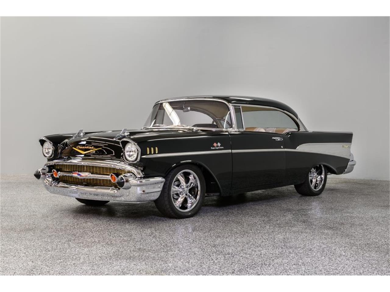 From the beautiful paint to the stunning interior to the powerful LS1 drivetrain, this 57 BelAir is a perfect example of a vision brought to life. Cadillac Black paint is virtually flawless, as is all chrome and stainless body trim. Note the period correct 57 Fuel Injected insignias on the fenders. This BelAir sits lower than the factory version on upgraded suspension and Foose 17 inch chrome alloys that mount Nitto NT radials. The plush two tone tan leather interior was created by Daves Upholstery, Drexel, NC and is stunning, this 4 bucket seat design with full length console should have been a factory option. The original BelAir steering wheel has been replaced with an alloy wood wheel and a set of Dakota Digital classic gauges with LED lighting are mounted in the original dash pod. Enjoy the ride with AC, tinted windows, tilt wheel, power seats and AM FM stereo. Under the hood is a fuel injected LS 1 in stock trim that was taken directly from a 2002 Camaro.