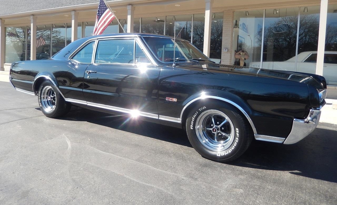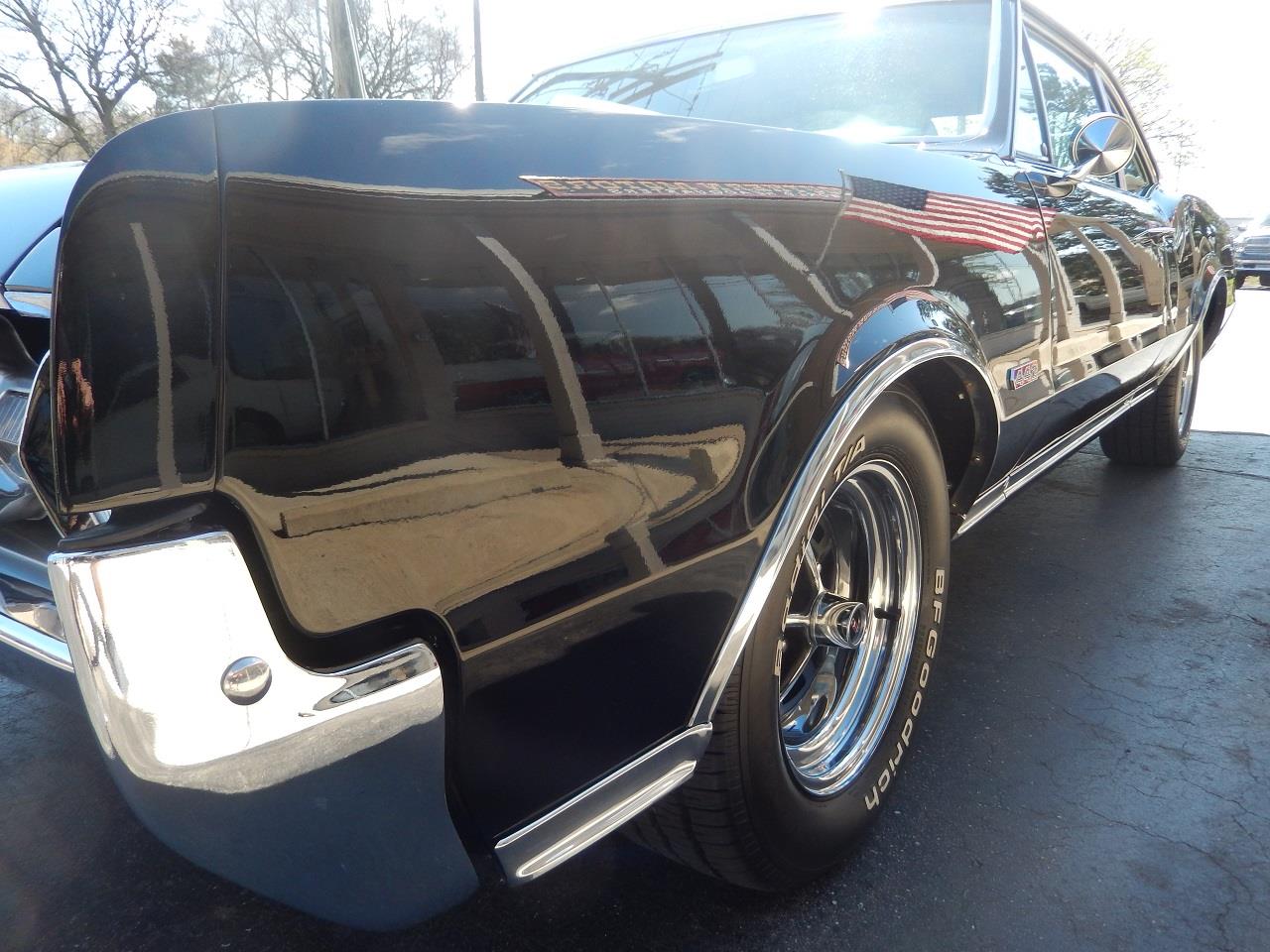 Beautiful Tuxedo black paint, black vinyl interior, 455 ci engine, Muncie 4 speed manual transmission, Holley Performance dual feed 4 bbl, Edelbrock aluminum intake, factory exhaust manifolds, chrome air cleaner & valve covers, power steering, power front disc brakes, air conditioning, bucket seats with console, factory Hurst 442 shifter, factory tach & gauges, Audiosounds radio, Flowmaster dual exhaust, 10 bolt 3.55 limited slip rear end with sway bar, boxed control arms, 245/60R15 BF Goodrich Radial TA tires, 15” SS1 wheels, factory louvered hood, factory tinted glass, Ready to Cruise!