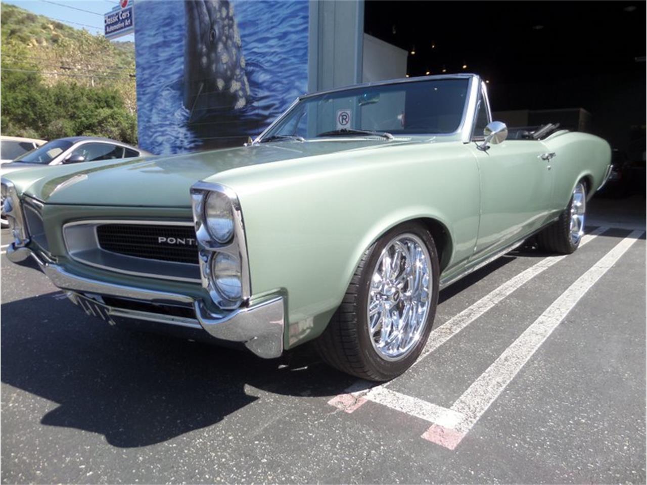 This gorgeous Lemans convertible is stunning with flawless paint and chrome, black cloth convertible top and complimented by sparkling new wheel and tires. Here is a list of all the improvements and or replaced parts: 350 Motor with a 700R 4 Speed Transmission (Only 1011 Miles) Holly Sniper EFI Fuel Management System. Including the Gas Tank and the in-Tank Fuel Pump System. Disc brakes all the way around All Suspension parts have been replaced and upgraded. Upper Control Arms, Lower Control Arms, Tie- Rods, Ball Joints, Front and Rear Ways Bars and Coil-Over Shocks Front & Rear. (Ride Height Can Be Changed Very Easily) Borgeson Gear Box System that has Rack N Pinion like responses. 12.2 ratio Every Part was Replaced on the Convertible Top including the motor, Cylinders, Lines, Pads, Chrome Dash Switch and the new Beautiful Black Canvas Top. Dash was Replaced with a Dakota Digital, Custom Auto Stereo (300W) with Hands-Free and Bluetooth Upgraded to Kenwood and all the speakers both in dash and Kick Panels (Sound Good!) Dash Pad was replaced to. (The Whole Dash Looks Amazing!) Better than stock. Upgraded Leather Rapped Steering with Pontiac Logo New Glove Box Trunk was completely restored Rear Taillights Were Upgraded to LED by Dakota Digital Chrome US Mag Wheels with Pontiac Logos 18x8.0 front and 20x9.5 rear with Falken Tires.