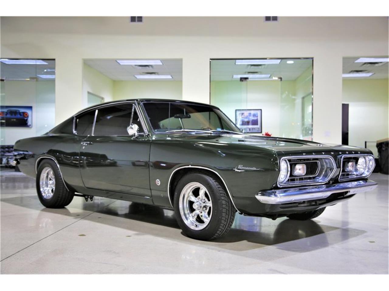 This 1967 Barracuda Formula S Coupe looks fairly original and is the ultimate Sleeper. Under the hood lurks a modern 5.7L Hemi with 6.1L Heads and internal components. With the optional Methanol Injection and Twin Turbos, this beast is rated at 825 Horsepower at the rear wheels. Finished in Hunter Green, this Barracuda is easy to drive with Power Steering, Power Brakes and A/C.
