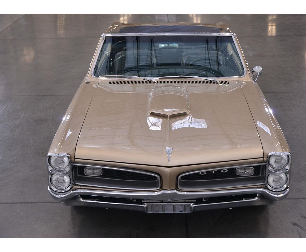 1966 Pontiac GTO convertible numbers matching 389 CID V8 engine, 3-speed floor shifter automatic transmission. The black vinyl interior is mostly original inside this GTO and you'll love the factory gauges and lap belts. The power convertible top works very nice.