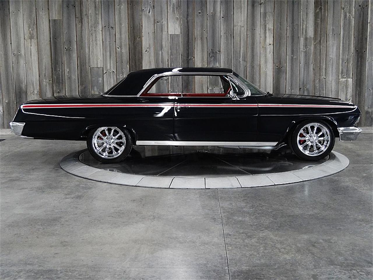 1962 Impala 2 door Custom. Finished in dark midnight blue paint. Complete Frame off rotisserie restoration, new custom red interior with impala logo accents. All New Interior, seats, carpet, door panels, dash, gauges, lenses, carpet Full width Floor Mats etc.