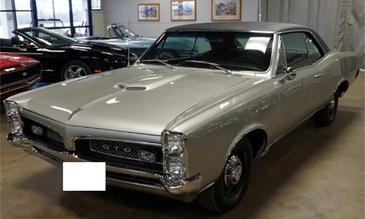 Pontiacs wildly successful Le Mans-based GTO featured several mild, yet highly effective styling revisions and numerous functional updates underneath. It also continued for the second model year as a unique Pontiac series. Engines were upsized for 67 to 400 CI with a 335-HP unit standard equipment. A fully integrated high-performance car with class, image and the substance to back it up, the GTO sparked competitors from virtually all American makes, yet maintained strong sales and enduring respect throughout production.Featuring rare Silver paint and retaining the matching numbers YS-Code 335 HP, 400 CI V-8 engine. A high-quality example, this GTO also retains the mostly original interior compartment with the sole exception of replaced carpeting. Other choice features include a Turbo-Hydramatic 3-speed automatic transmission, Hurst Dual/Gate shifter, bucket seats and console, factory air conditioning, AM/FM radio, power steering and power brakes.