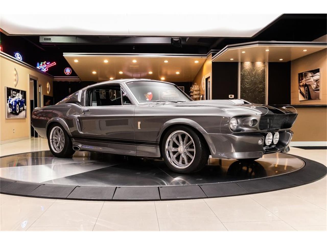 Glossy Pepper Gray Paint finish with Painted Black Stripes, Black Interior, 17 inch Polished Aluminum American Racing Wheels, Fog Lights, Sequential Tail Lights, Side Scoops, Custom Hood with Safety Pins, along with Side Exhaust that's sure to turn heads wherever you go! Under the hood sits a Ford 428ci Cobra Jet V8 Engine mated to a Toploader 4-Speed Manual Transmission! Power is sent to the rear tires through a Ford 9'' Rear End with an Open Differential. This Eleanor is an absolute blast to drive and you can cruise around town with ease thanks to the equipped Power Steering, Power Brakes (front disc), and Vintage Air A/C on this Ford!