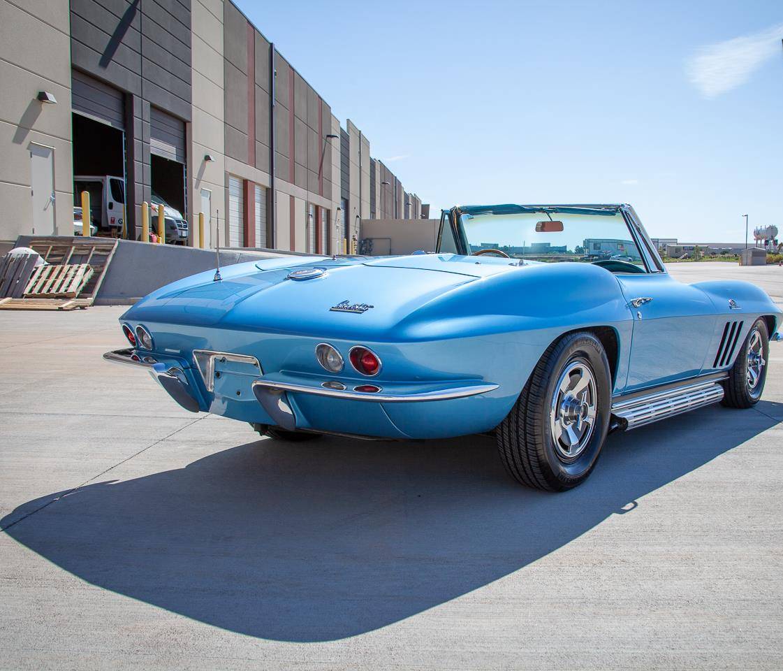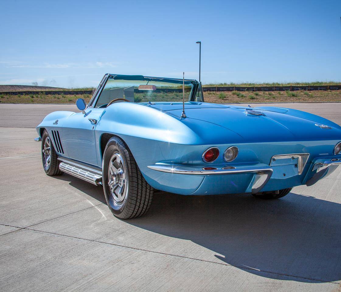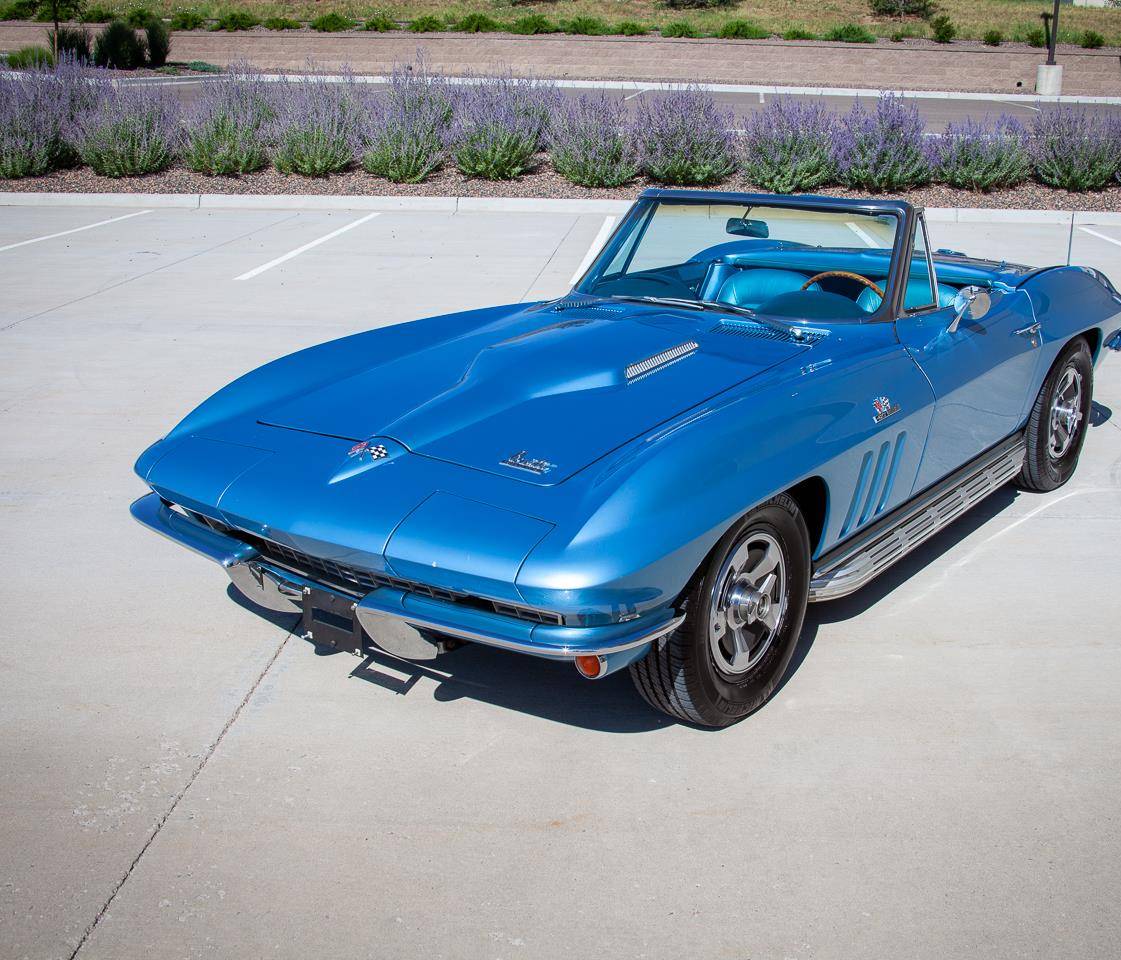 1966 Chevrolet Corvette convertible. The C2. !966 Chevrolet Corvette for sale includes: Corvette floor mats, seat belts, AM/FM radio with electronic antenna, convertible manual top, leather bucket seats.