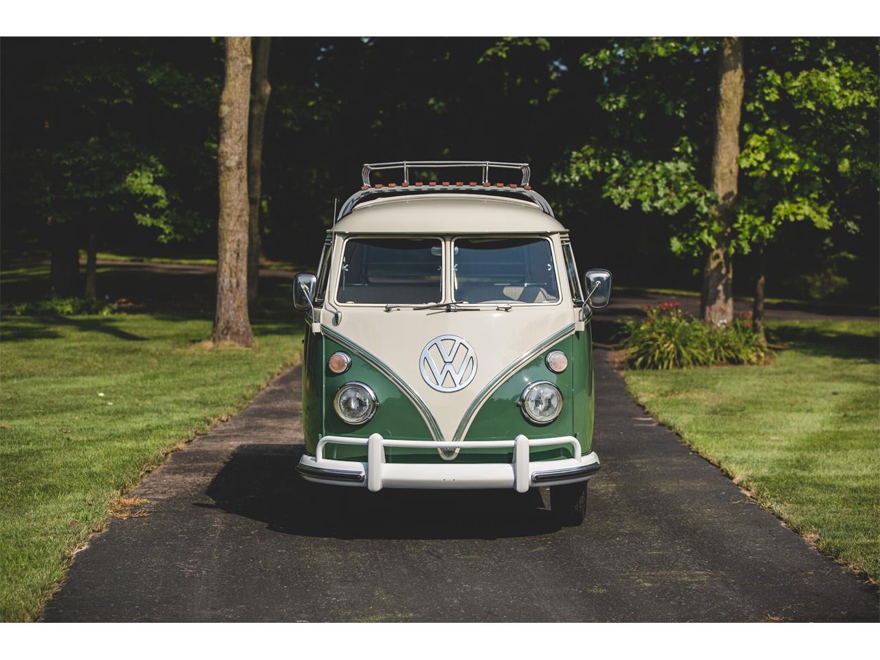 The bus was born as a 21 Window Microbus Deluxe Samba on October 7, 1965 in the original colors of velvet green and pearl white.