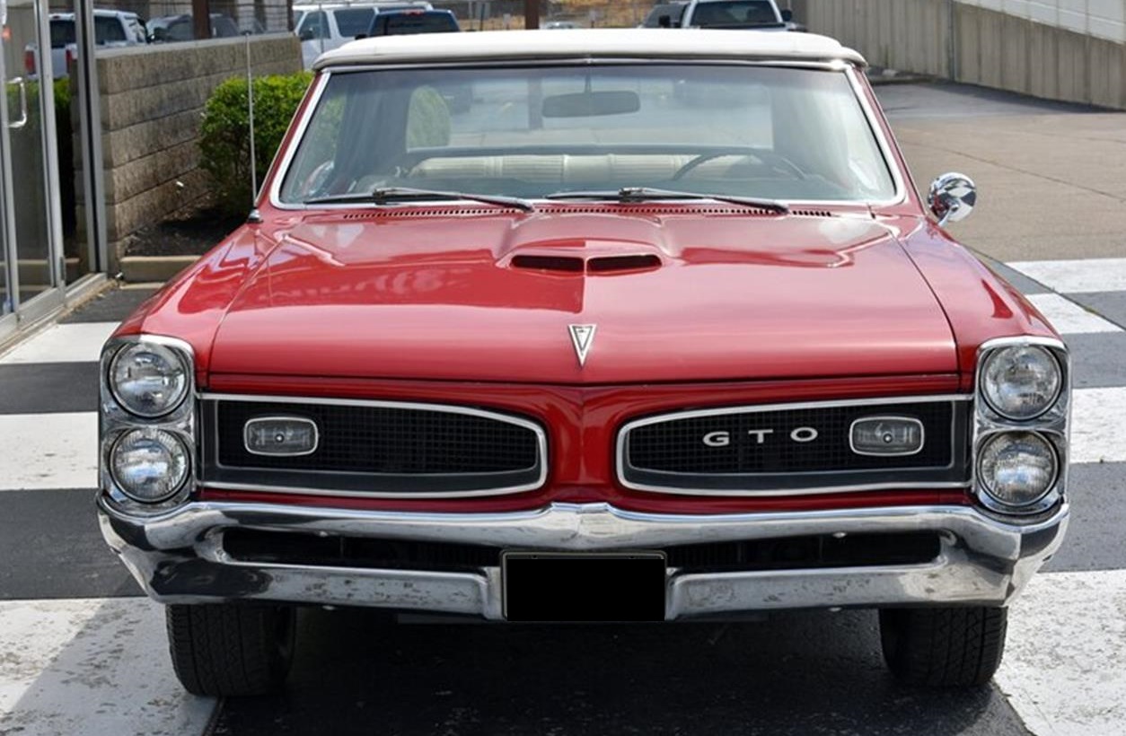 1966 GTO Convertible Regimental Red with Parchment Interior and White Soft Top. Proper ""YS"" Code 389 with Automatic Transmission. Features include Power Steering, Power Brakes, Power Soft Top, AM/FM Radio, Bucket Seats with Console, Seat Belts, Auxiliary Gauges, and Rally II Wheels with White Letter Radials. Great Looking, fun to drive. Original GTO.