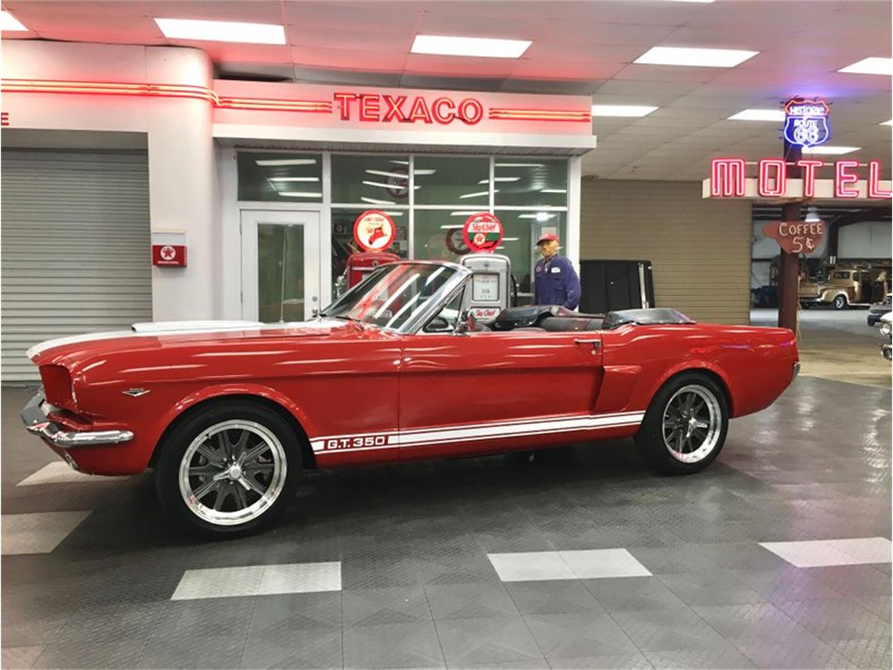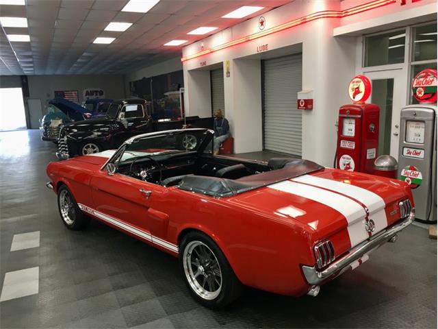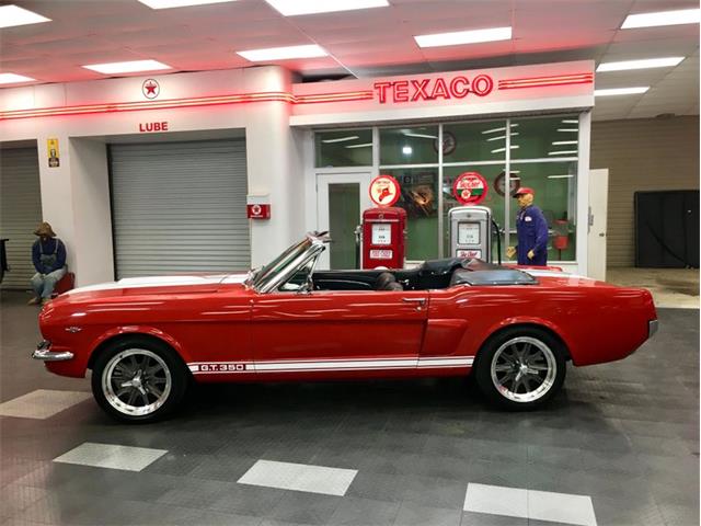 1965 Ford Mustang Convertible. Beautiful two stage red paint with added Shelby GT350 pkg. 289 V8 with 4 barrel and aluminum intake. C4 automatic transmission. Power steering. Power disc brakes. Pony interior. 17" wheels. The body is arrow straight with an excellent fit and finish with a detailed engine compartment and great looking Pony interior. The mustang runs and drives as good as it looks being very tight and sound on the road and makes for a very dependable driver.