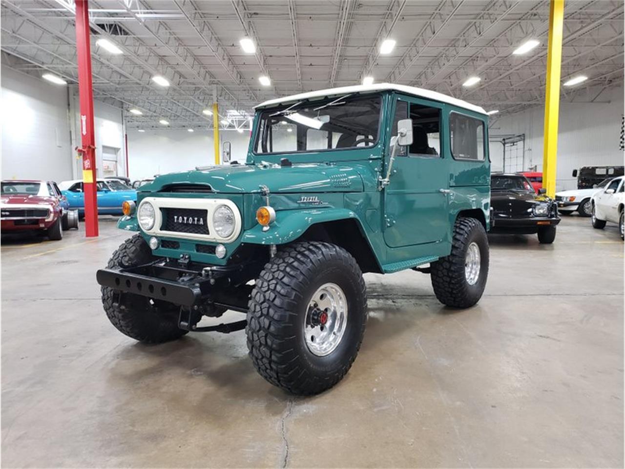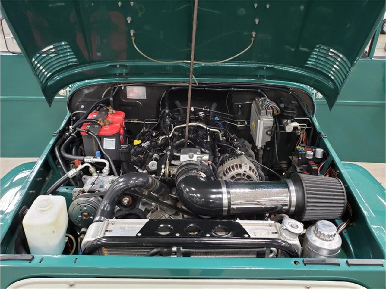 Inside, Master Craft bucket seats combine with correctly finished metal panels make the classic industrial look of the original truck stand out. Automatic transmission, power steering and air conditioning make this one fun to drive. On the outside the unmistakable profile of the FJ40 is raised by a set of 35'' BFG KM2 tires mounted on a Spring-under Axle setup from a Toyota truck. The rear suspension was replaced with a modern Toyota mini truck, swapping the rear drums to disk at the same time. An upgraded set of Bilstein 5100-series shocks keep the tires firmly planted. Under the Mickey Thompson 15 x 8' wheels, the disc brakes are powered by a Wilwood master cylinder. Best of all, this show quality restoration was treated to the best upgrade of all... a 5.3L GM LS V8 with Turbo 350 automatic transmission and 4WD transfer case. This FJ has the looks, quality and performance that makes it a special buy.