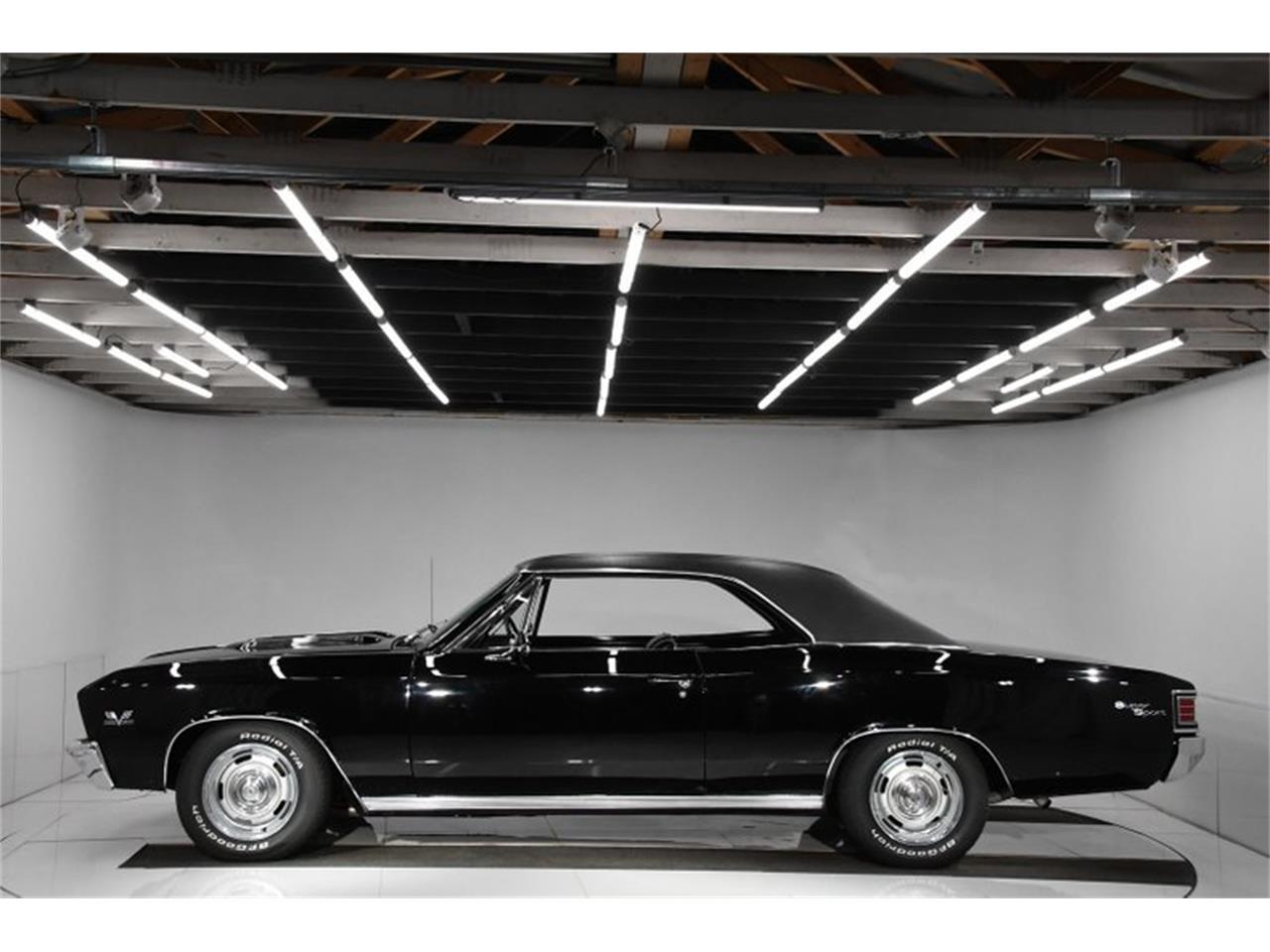 1967 Chevrolet Chevelle real SS 396. Rare 396-350 hp # match motor, born a 4-speed (now upgraded to a 5-speed) with original 4.10 Born triple black with bucket seats. 1967 chevelle motor has VIN number match original 350 hp engine, stock manifolds and valve covers. It is upgraded with a Sniper fuel injection system and HEI ignition. The firewall looks exceptionally clean. The components look proper. New alternator and wiper motor. Very desirable power steering and power brakes. Has the correct power steering remote reservoir. Also has an upgraded aluminum radiator with proper clutch fan and shroud. Like the rest of the car it is unabused and tidy.