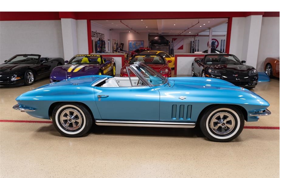 1965 Chevrolet Corvette Convertible Nassau Blue over White Leather.